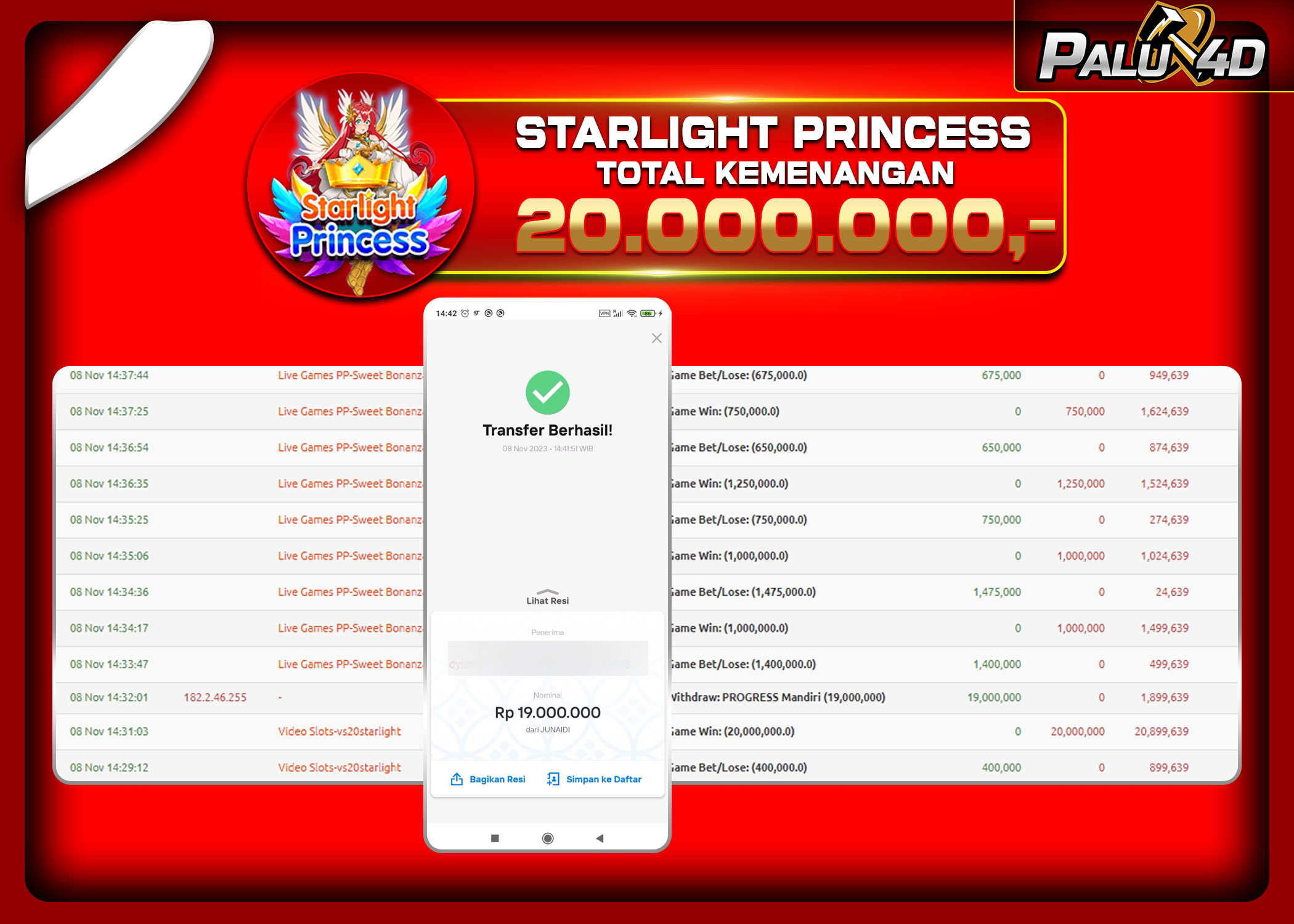 PALU4D – Menang Slot STARLIGHT PRINCESS Rp.20.000.000.,- LUNAS