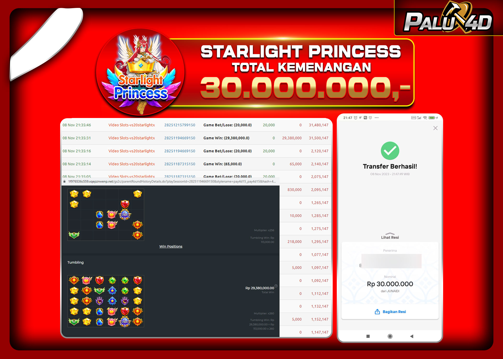 PALU4D – Menang Slot STARLIGHT PRINCESS Rp.30.000.000.,- LUNAS