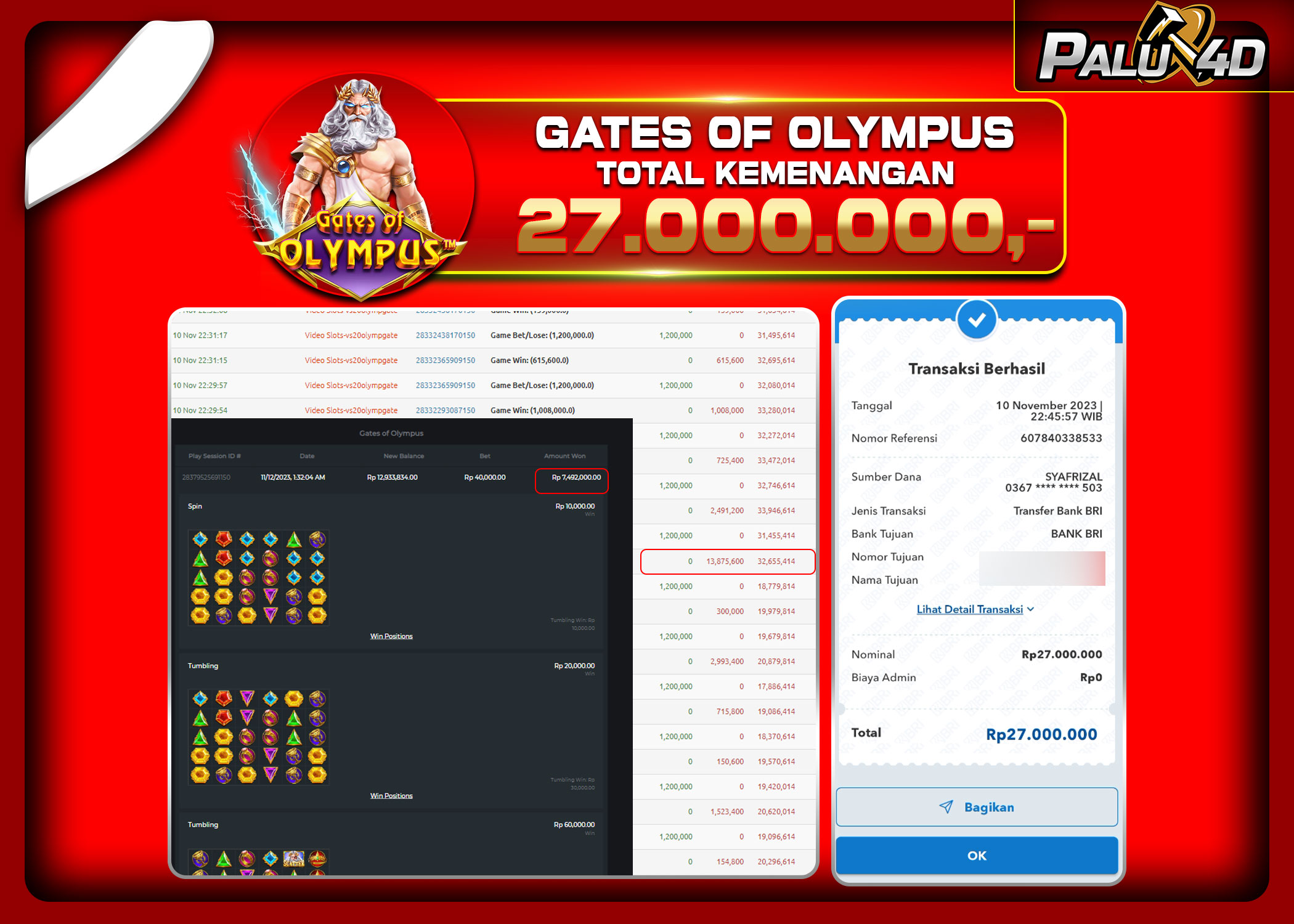 PALU4D – Menang Slot GATE OF OLYMPUS Rp.27.000.000.,- LUNAS