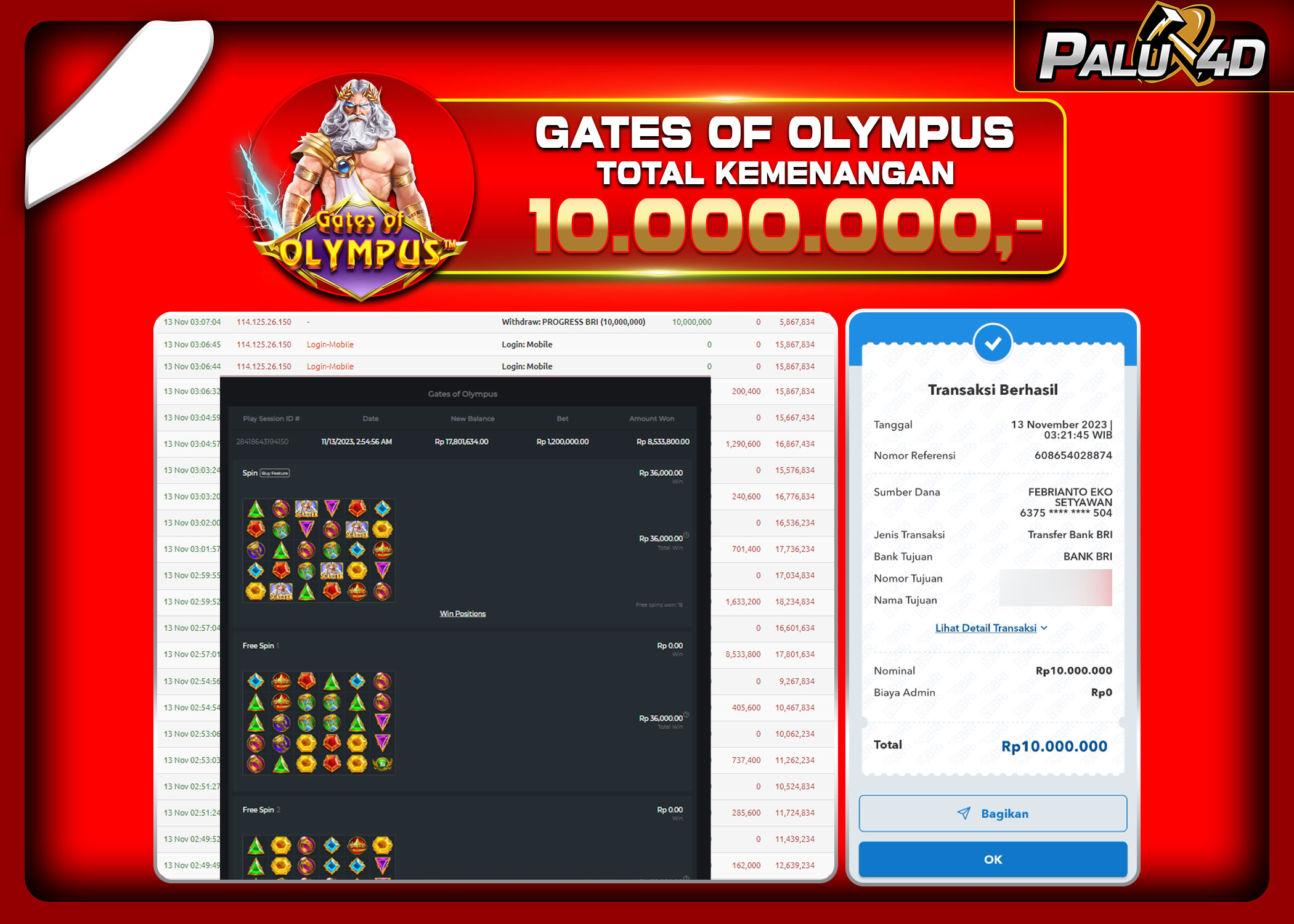 PALU4D – Menang Slot GATE OF OLYMPUS Rp.10.000.000.,- LUNAS