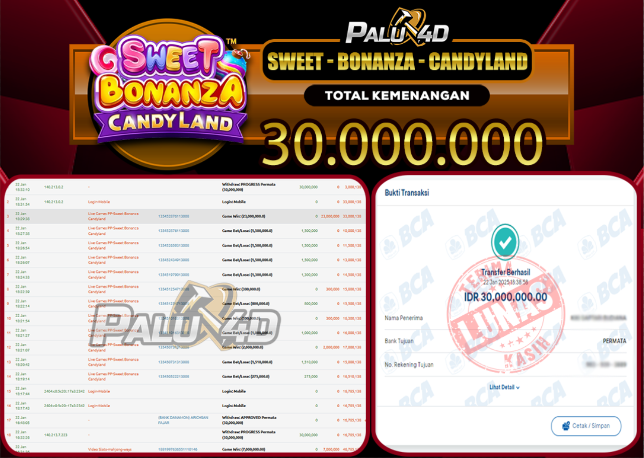 PALU4D – Menang LIVE CASINO SWEET BONANZA CANDYLAND Rp.30.000.000.,- LUNAS