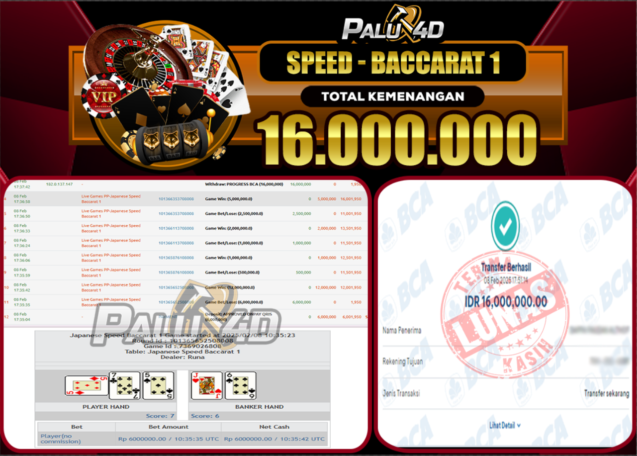 PALU4D – Menang Live Games BACCARAT Rp.16.000.000.,- LUNAS