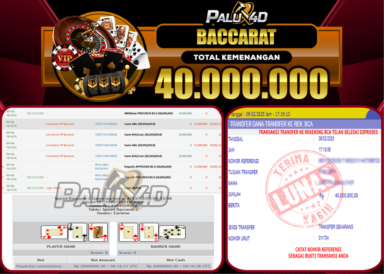 PALU4D – Menang Live Games BACCARAT Rp.40.000.000.,- LUNAS