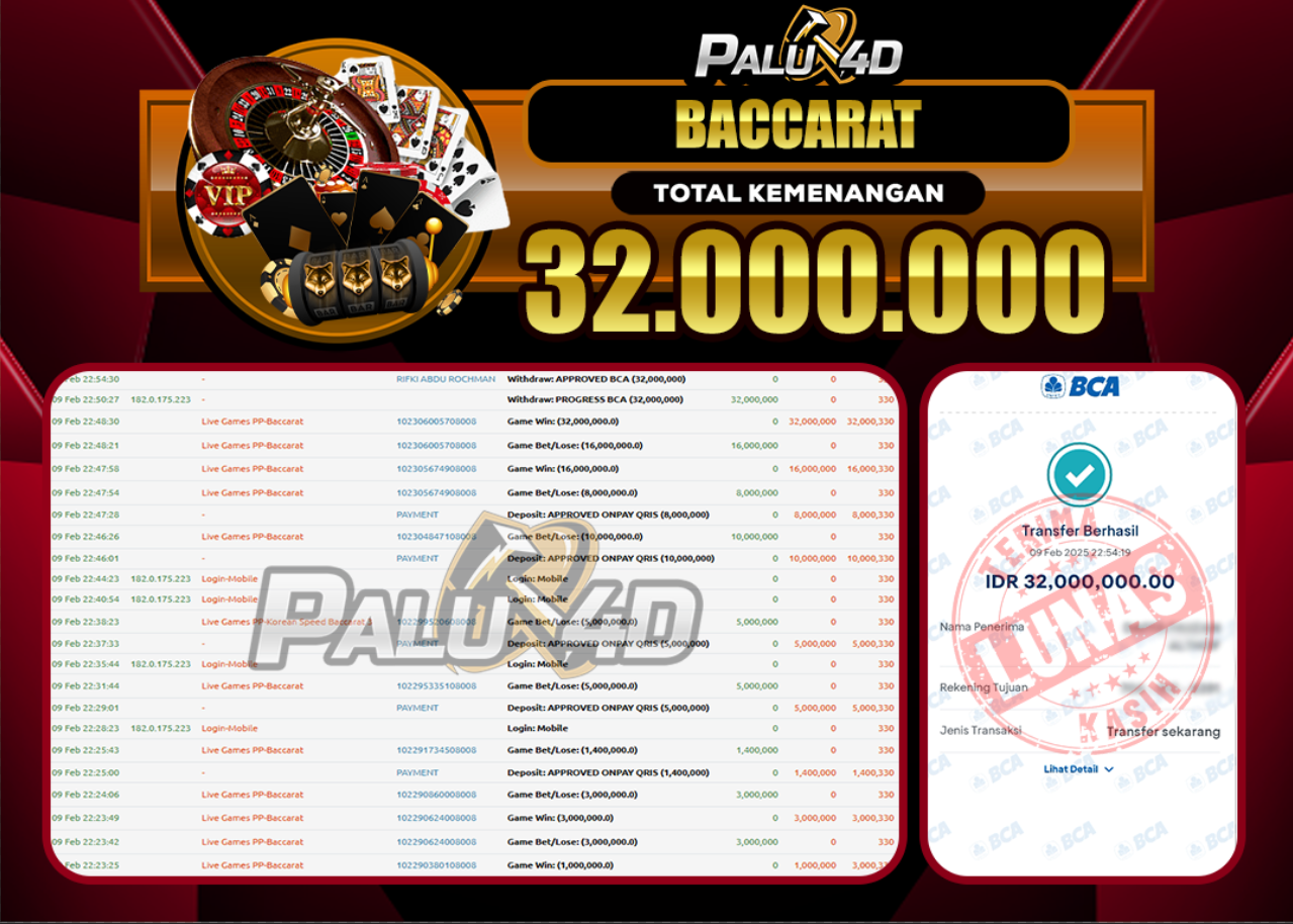 PALU4D – Menang Live Games BACCARAT Rp.32.000.000.,- LUNAS