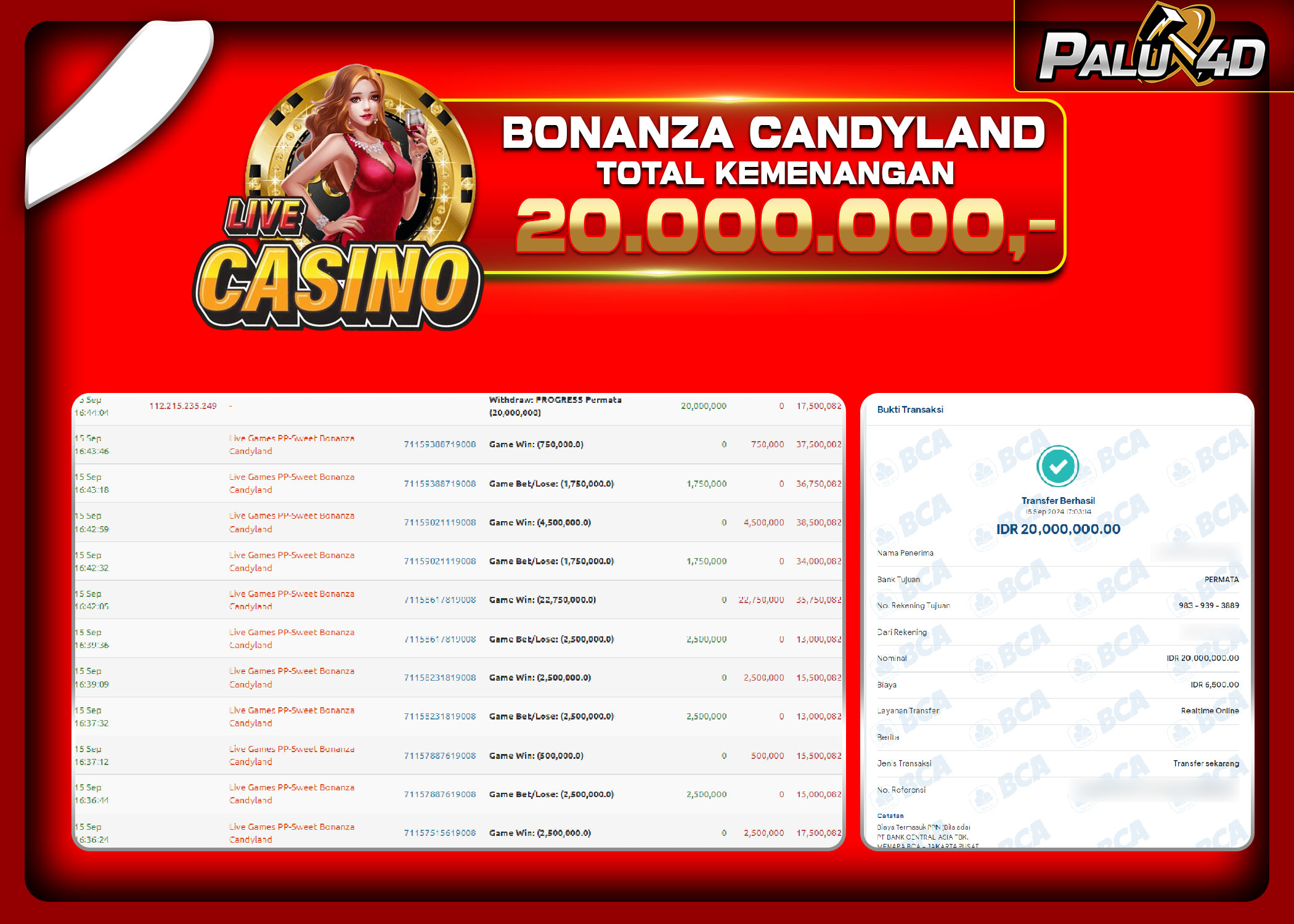 PALU4D – Menang LIVE CASINO SWEET BONANZA CANDYLAND Rp.20.000.000.,- LUNAS