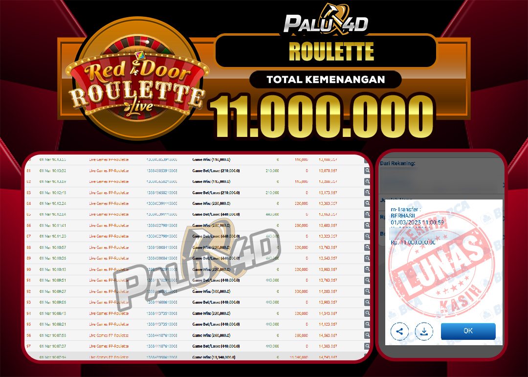 PALU4D – Menang LIVE CASINO MEGA ROULETTE Rp.11.000.000.,- LUNAS