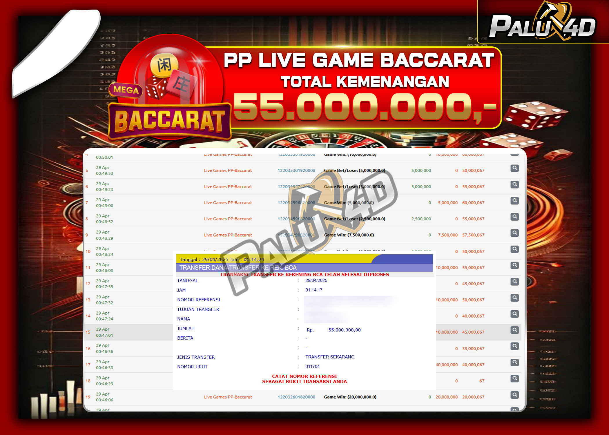 PALU4D – Menang Live Games BACCARAT Rp.55.000.000.,- LUNAS
