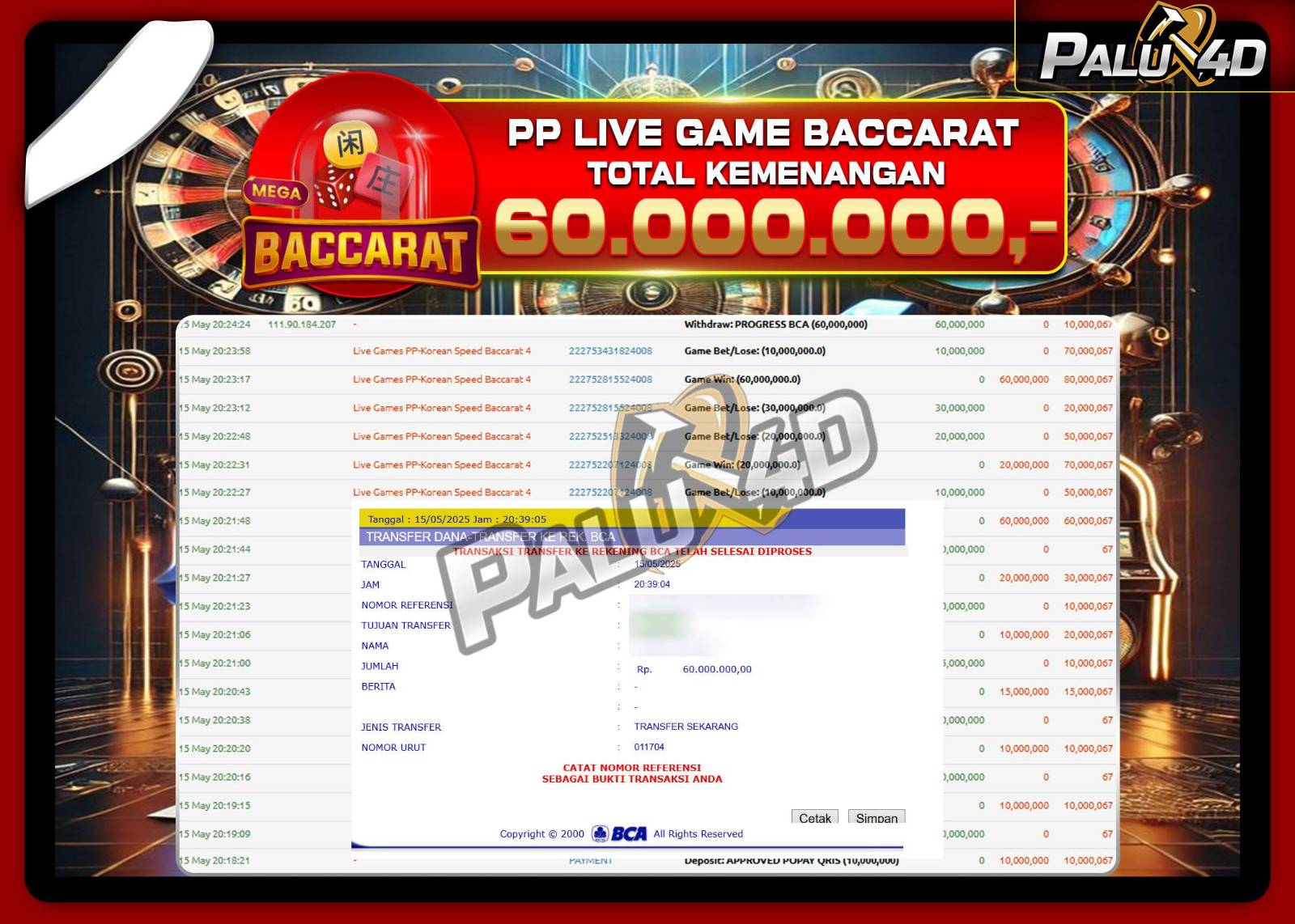 PALU4D – Menang Live Games BACCARAT Rp.60.000.000.,- LUNAS