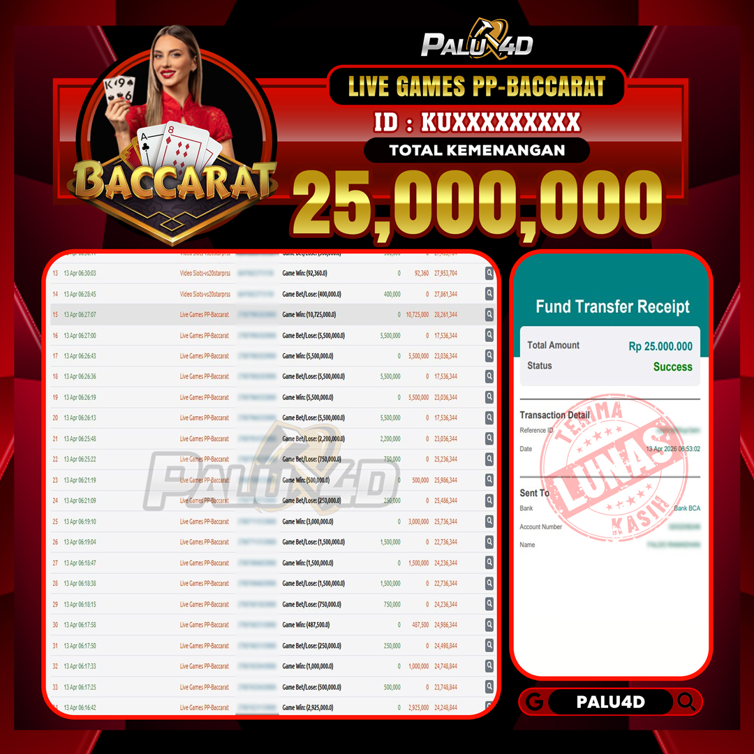 PALU4D – Selamat bagi pemenang yang mendapatkan jackpot hari ini 13 APRIL 2026 di game Live Games INDONESIAN MEGA SICBO yang di sediakan situs palu4d dan sudah kami bayar lunas. Berikut data pemenang hari ini yang kami proses dengan cepat ke rekening tujuan yang terdaftar di akun selama ±10 menit.