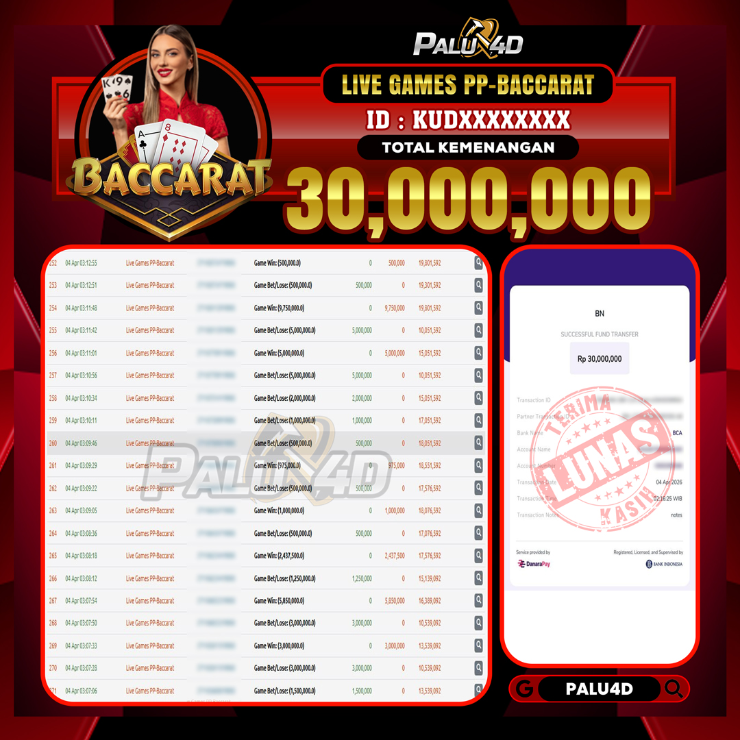PALU4D – Menang Live Games PP-BACCARAT Rp.30.000.000.,- LUNAS