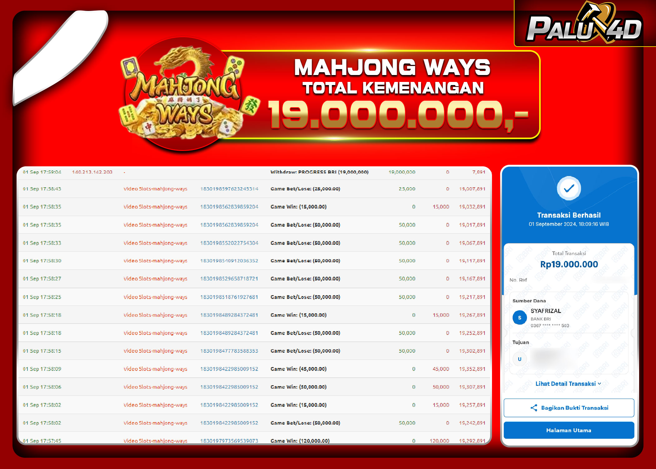 TOTAL JACKPOT : Rp 19.000.000