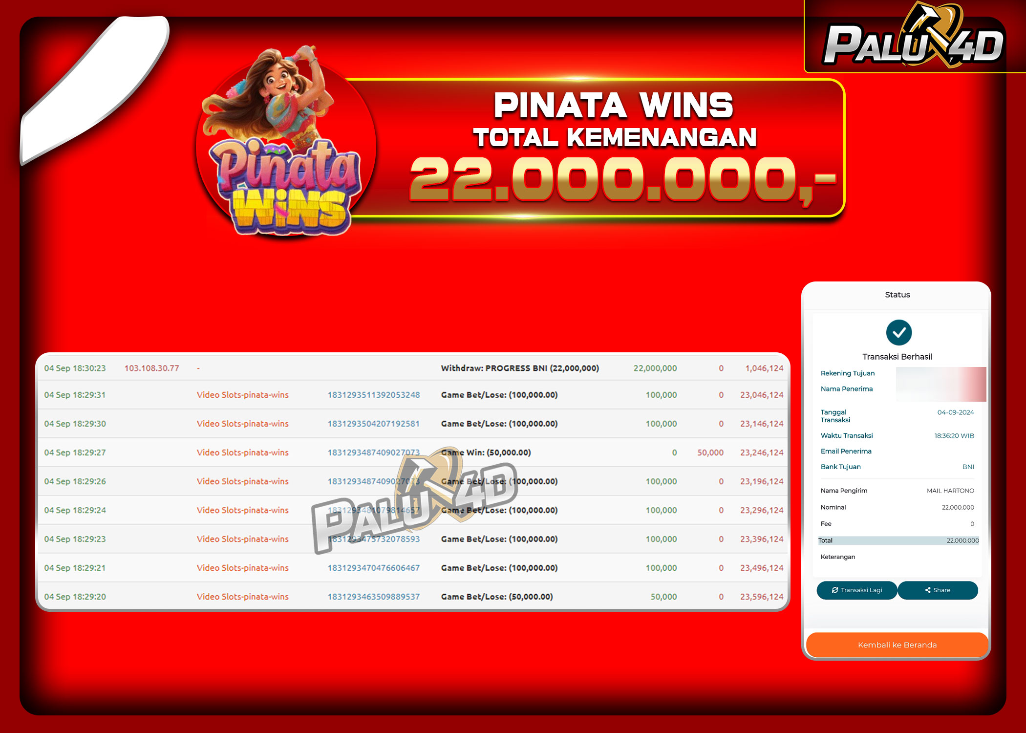 PALU4D – Menang Slot PINATA WINS Rp.22.000.000.,- LUNAS