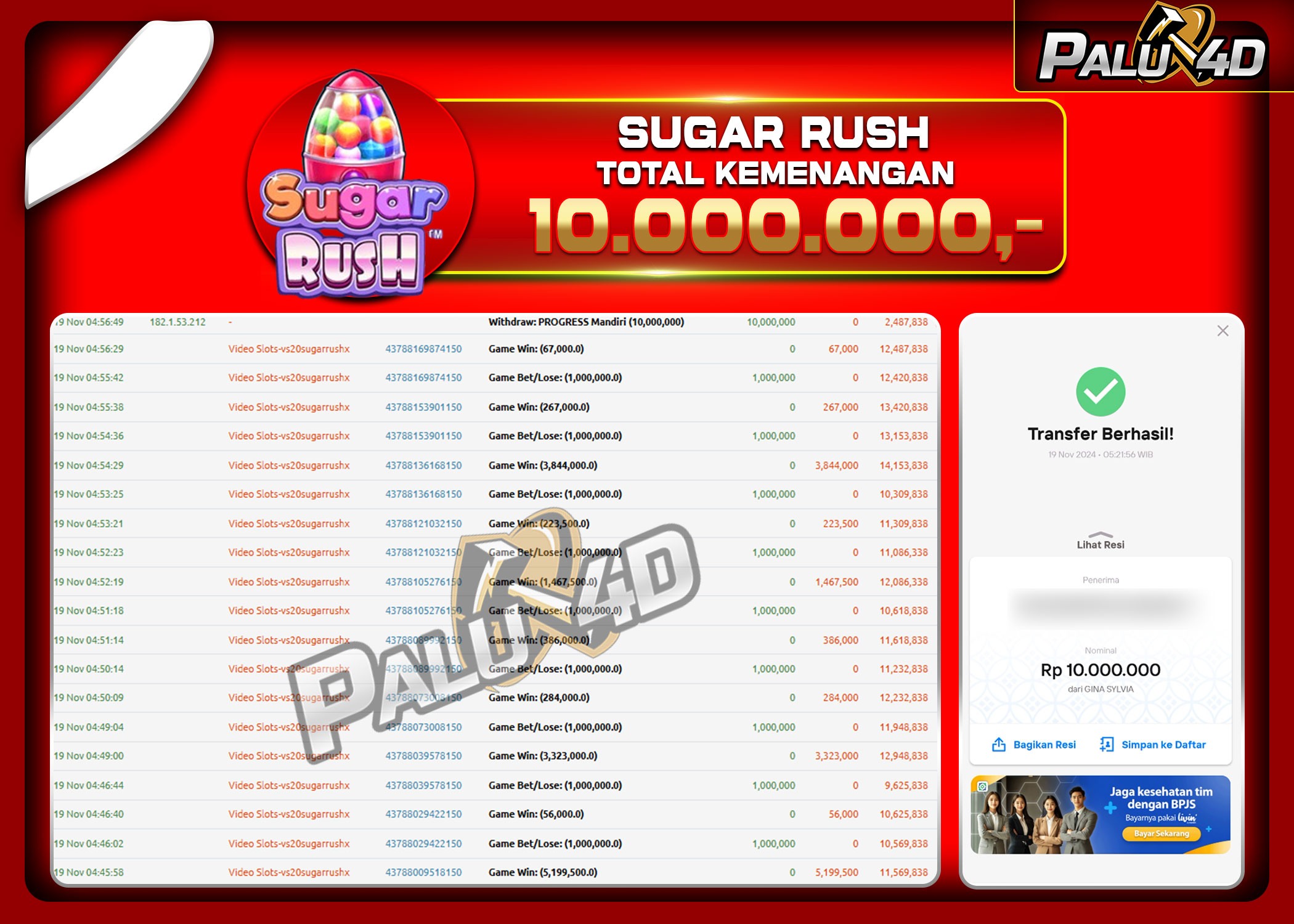 PALU4D – Menang Slot SUGAR RUSH Rp.10.000.000.,- LUNAS