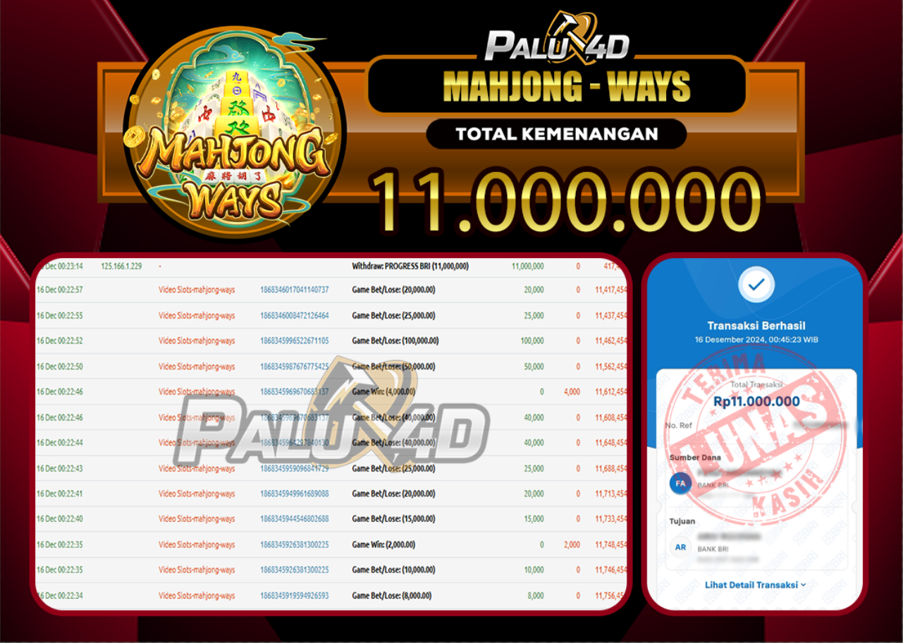 PALU4D – Menang Slot MAHJONG WAYS Rp.11.000.000.,- LUNAS