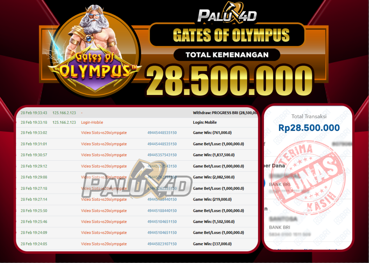PALU4D – Menang Slot GATE OF OLYMPUS  Rp.28.500.000.,- LUNAS