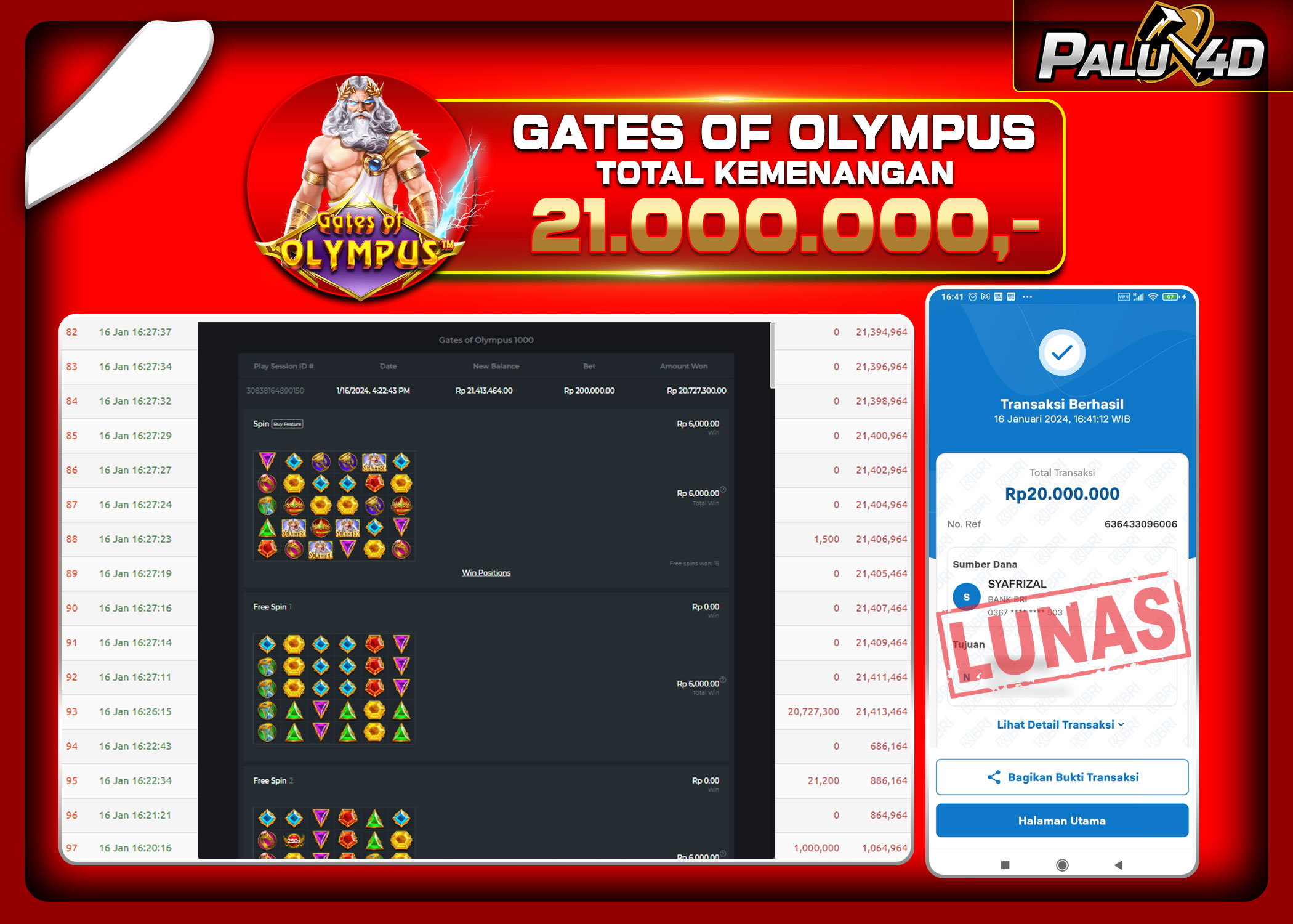 PALU4D – Menang Slot GATE OF OLYMPUS Rp.21.000.000.,- LUNAS