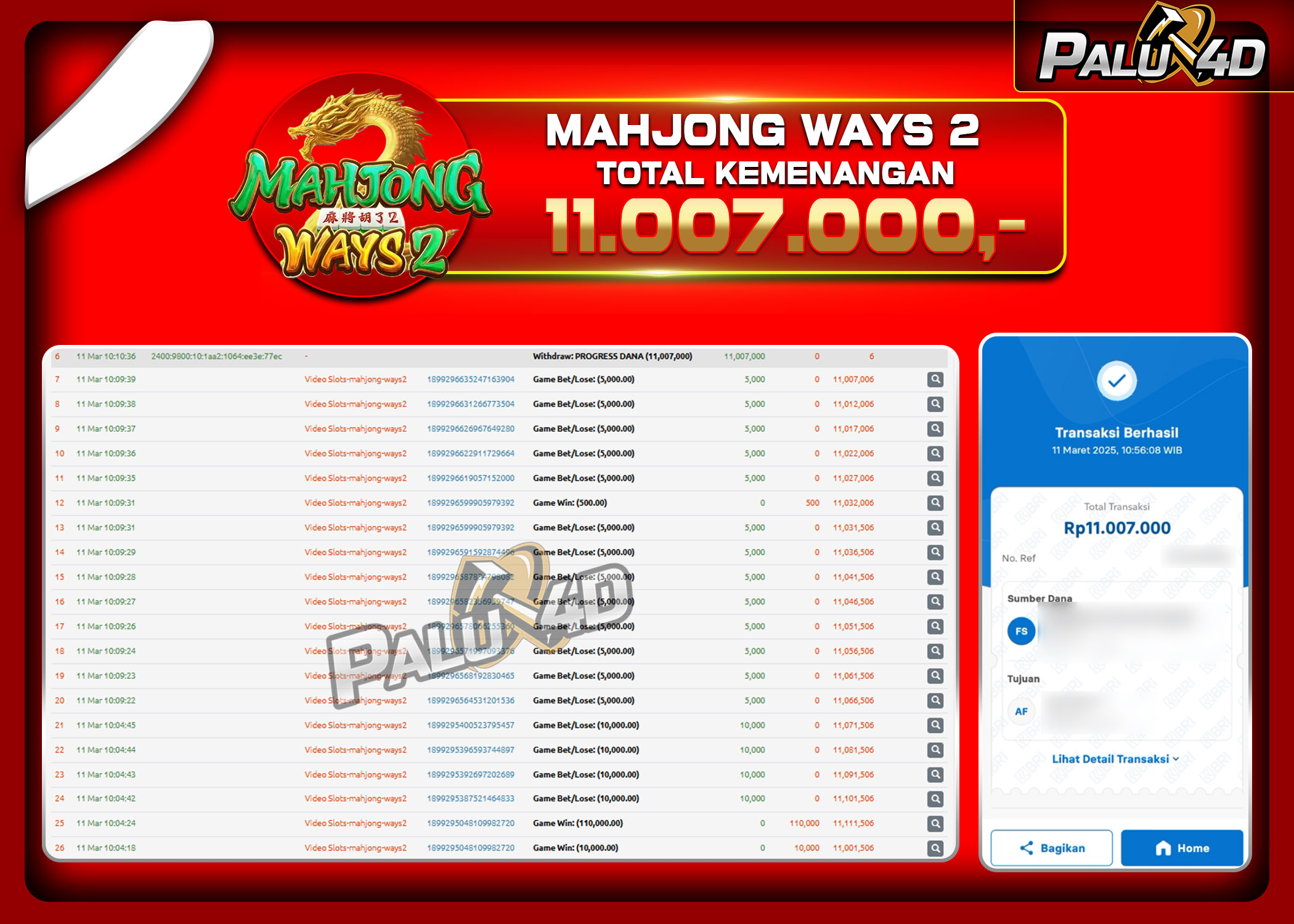 PALU4D – Menang Slot MAHJONG WAYS Rp.11.007.000.,- LUNAS