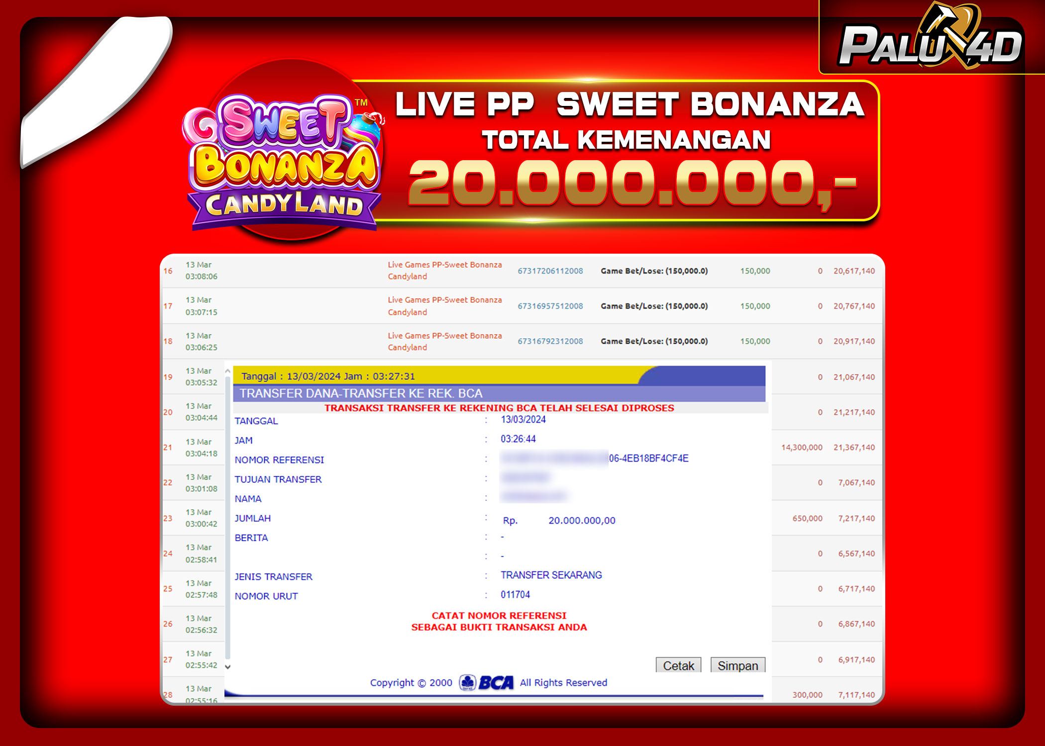 TOTAL JACKPOT : Rp 20.000.000