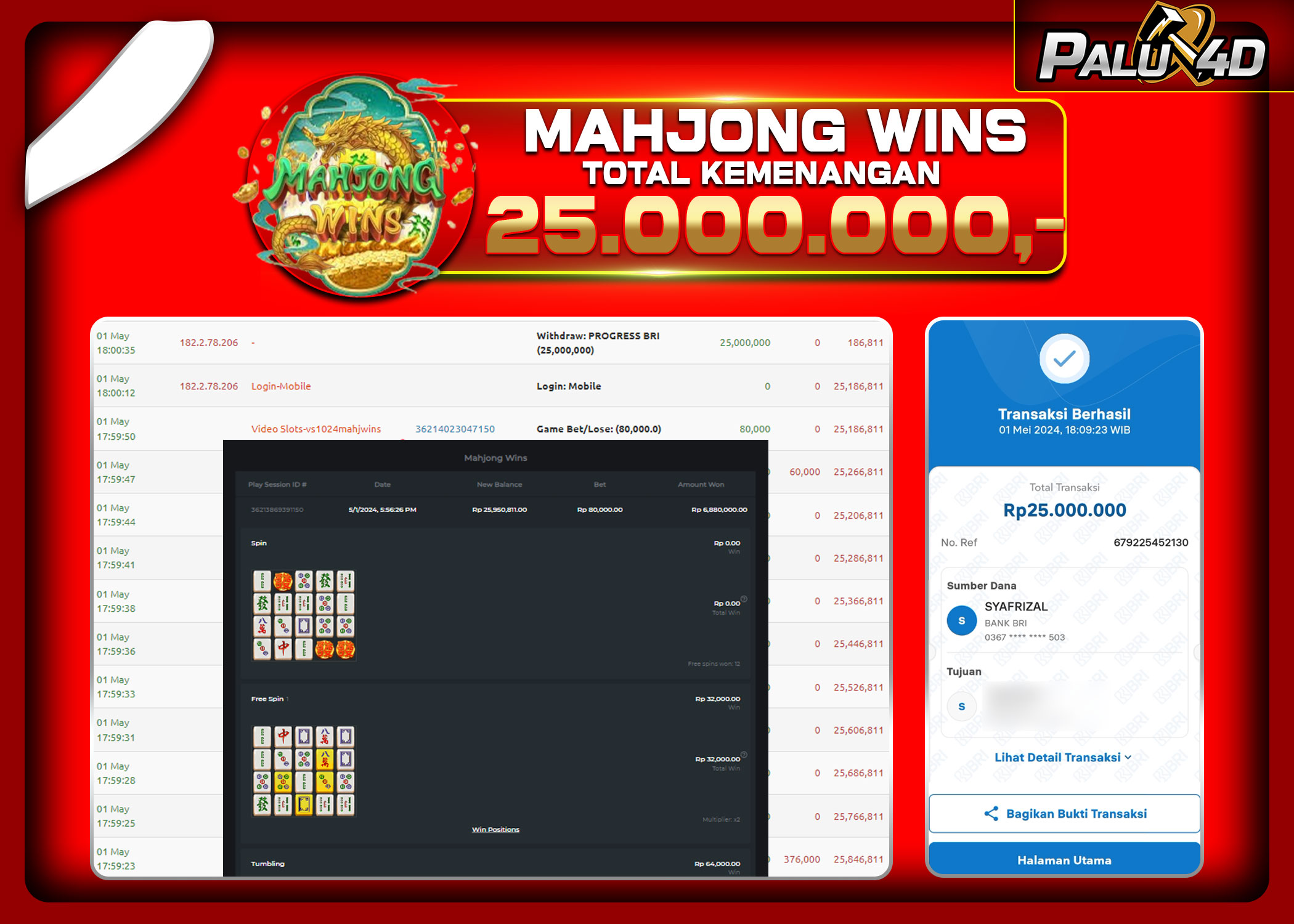 PALU4D – Menang Slot MAHJONG WINS Rp.25.000.000.,- LUNAS