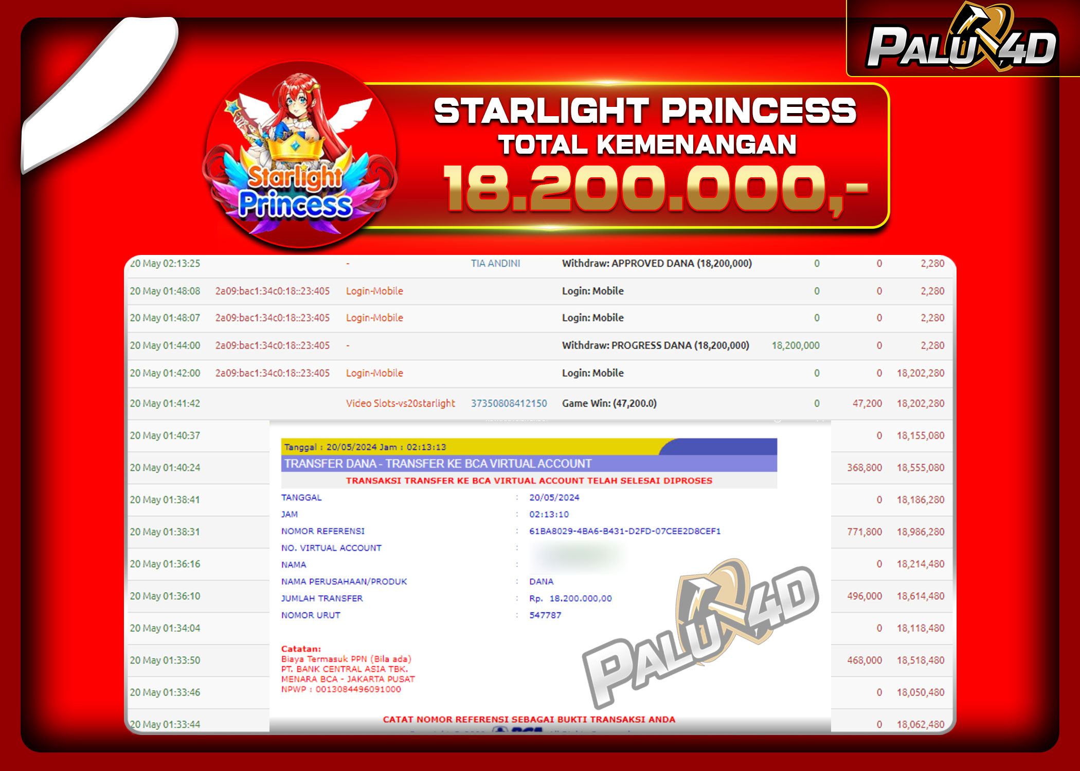 PALU4D – Menang Slot STARLIGHT PRINCESS Rp.18.200.000.,- LUNAS