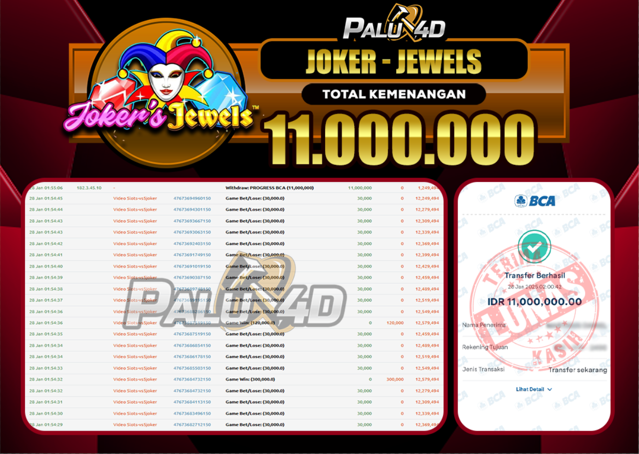 PALU4D – Menang Slot JOKER JEWELS Rp.11.000.000.,- LUNAS