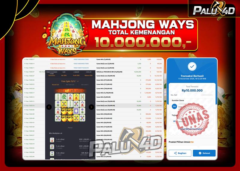 PALU4D – Menang Slot MAHJONG WAYS Rp.10.000.000.,- LUNAS