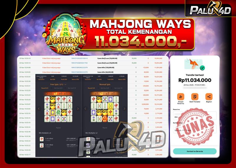 PALU4D – Menang Slot MAHJONG WAYS Rp.11.034.000.,- LUNAS