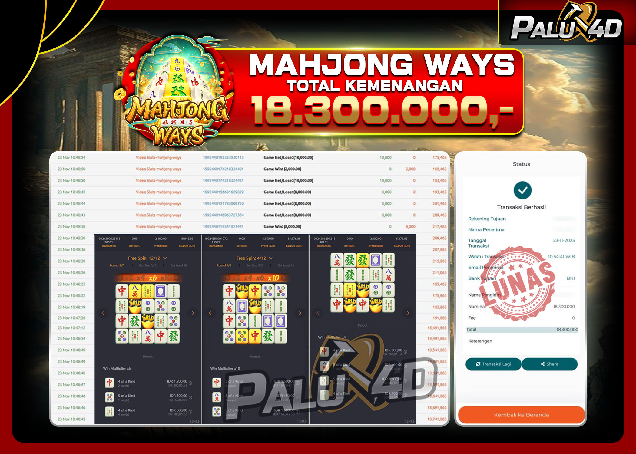 PALU4D – Menang Slot MAHJONG WAYS Rp.18.300.000.,- LUNAS