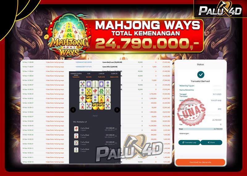 PALU4D – Menang Slot MAHJONG WAYS Rp.24.790.000.,- LUNAS
