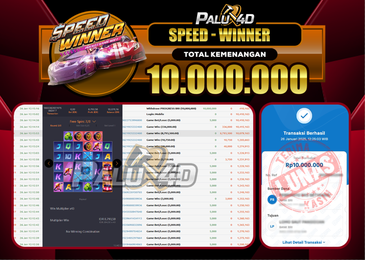 PALU4D – Menang Slot SPEED WINNER Rp.10.000.000.,- LUNAS