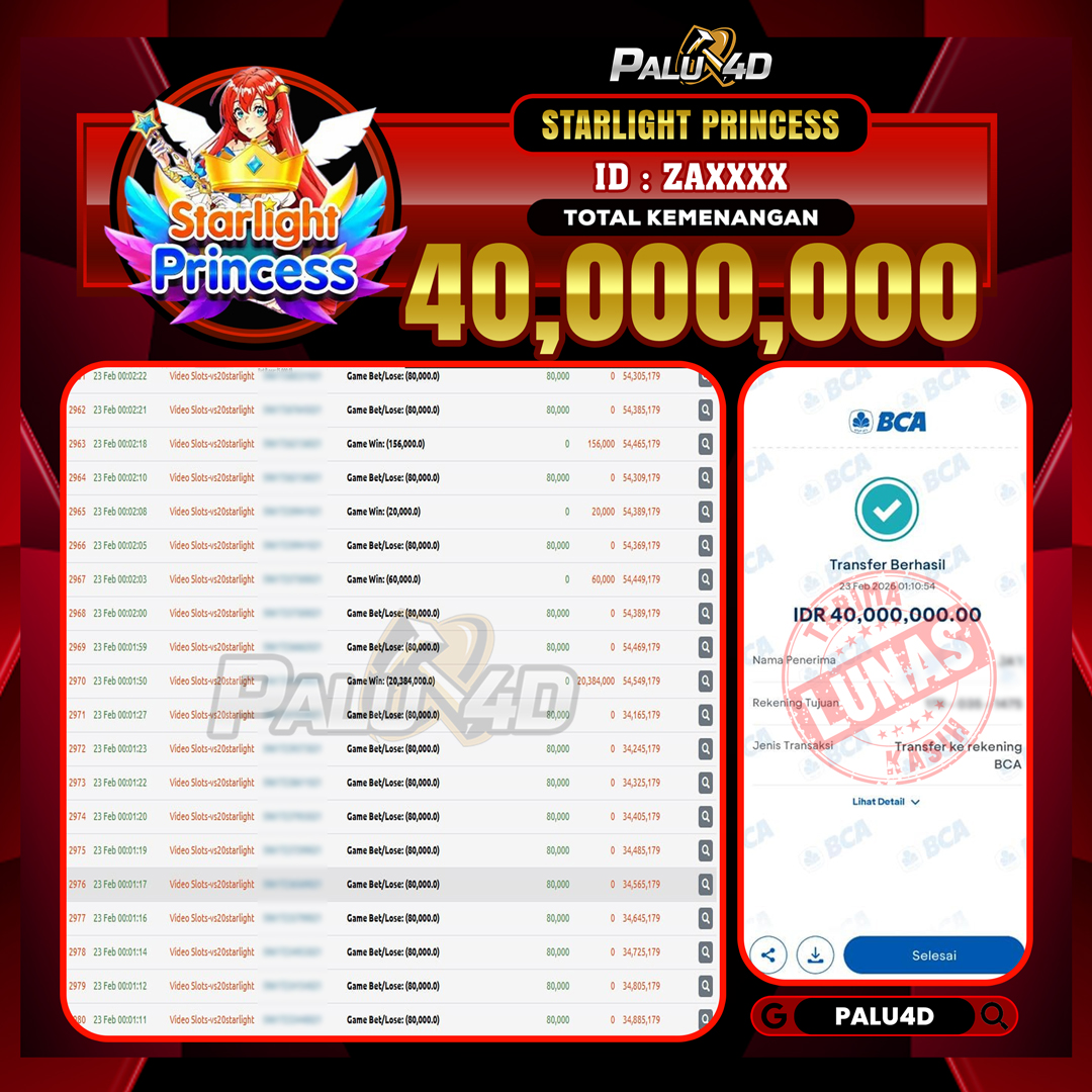 PALU4D – Menang Slot STARLIGHT PRINCESS Rp.40.000.000.,- LUNAS