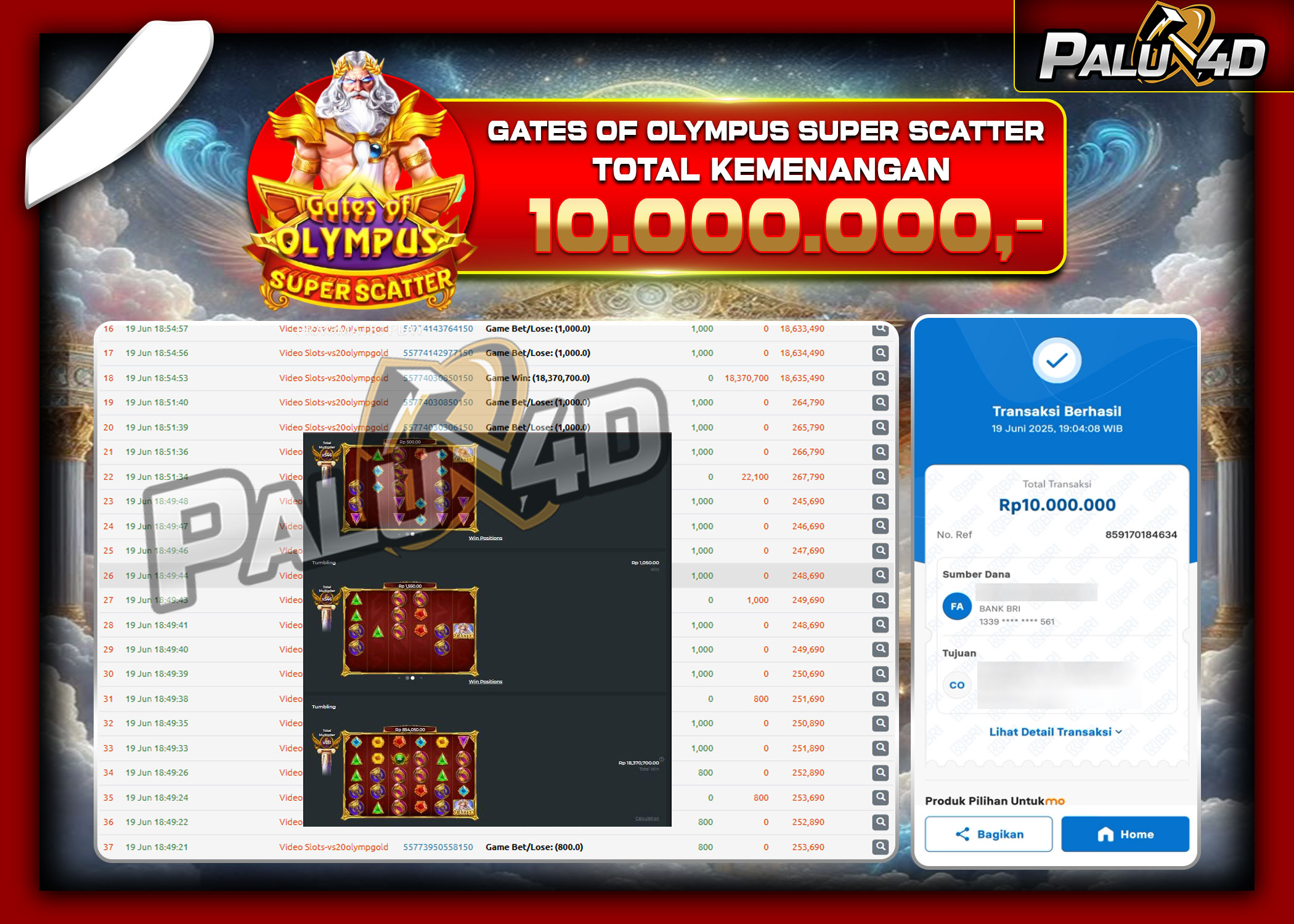 21/06/2025SLOT PALU4D – Menang Slot GATES OF OLYMPUS SUPER SCATTER Rp.10.000.000.,- LUNAS PALU4D – Menang Slot GATES OF OLYMPUS SUPER SCATTER Rp.10.000.000.,- LUNAS PALU4D – Selamat bagi pemenang yang mendapatkan jackpot hari ini 19 […]