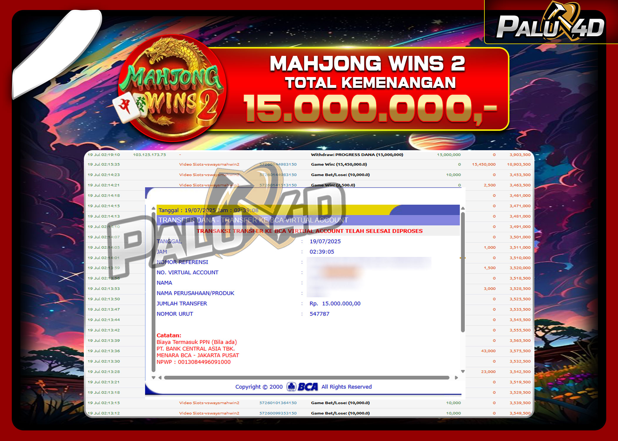 19/07/2025SLOT PALU4D – Menang Slot MAHJONG WINS 2 Rp.15.000.000.,- LUNAS PALU4D – Menang Slot MAHJONG WINS 2 Rp.15.000.000.,- LUNAS PALU4D – Selamat bagi pemenang yang mendapatkan jackpot hari ini 19 July 2025 […]