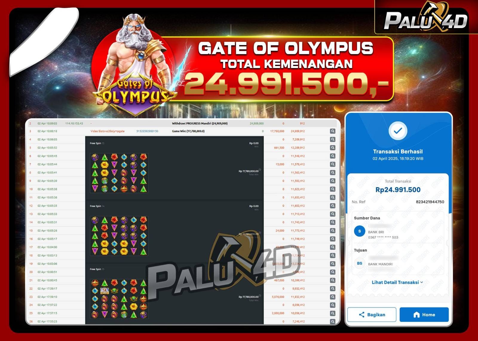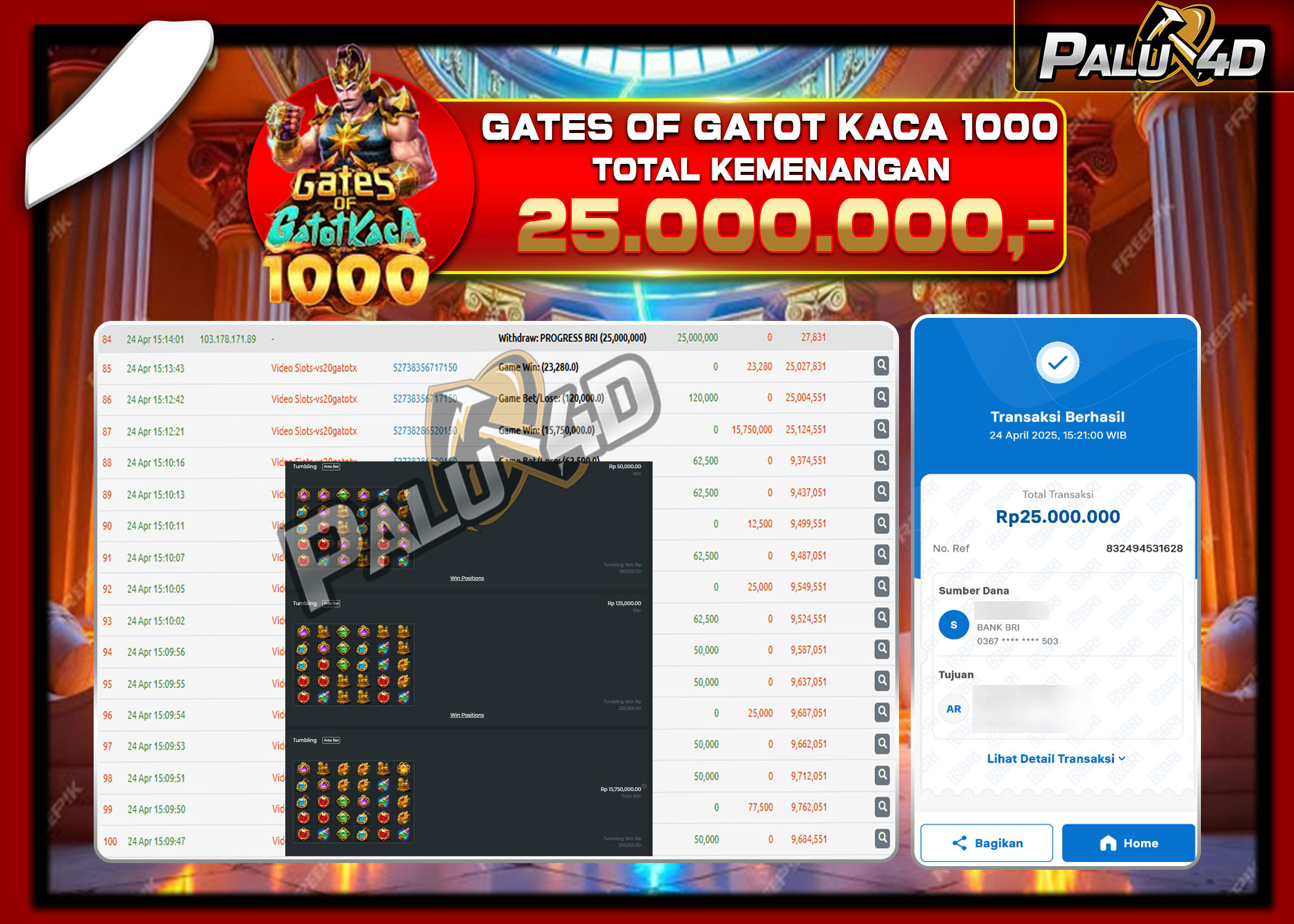 24/05/2025SLOT PALU4D – Menang Slot GATES OF GATOTKACA 1000 Rp.25.000.000.,- LUNAS PALU4D – Menang Slot GATES OF GATOTKACA 1000 Rp.25.000.000.,- LUNAS PALU4D – Selamat bagi pemenang yang mendapatkan jackpot hari ini 24 April […]