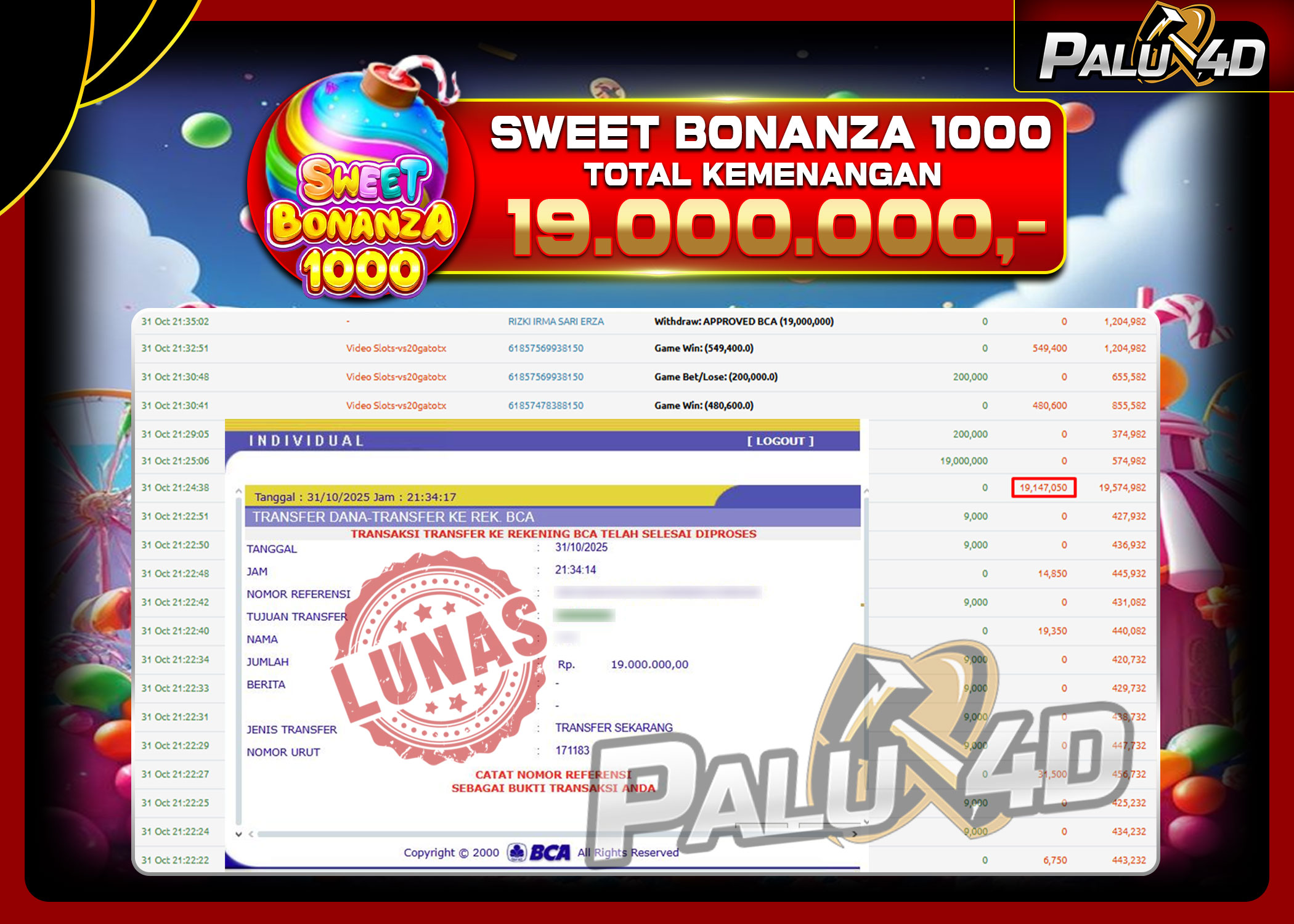 06/11/2025SLOT PALU4D – Menang Slot SWEET BONANZA 1000 Rp.19.000.000.,- LUNAS PALU4D – Menang Slot SWEET BONANZA 1000 Rp.19.000.000.,- LUNAS PALU4D – Selamat bagi pemenang yang mendapatkan jackpot hari ini 31 OKTOBER 2025 […]