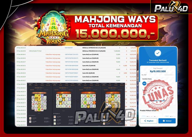 13/12/2025SLOT PALU4D – Menang Slot MAHJONG WAYS Rp.15.000.000.,- LUNAS PALU4D – Menang Slot MAHJONG WAYS Rp.15.000.000.,- LUNAS PALU4D – Selamat bagi pemenang yang mendapatkan jackpot hari ini 07 DESEMBER 2025 di […]