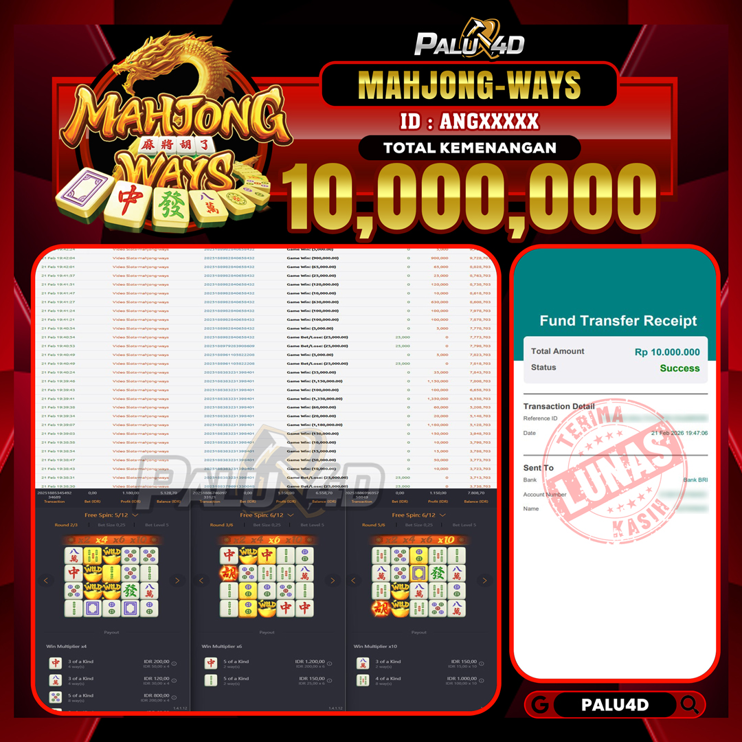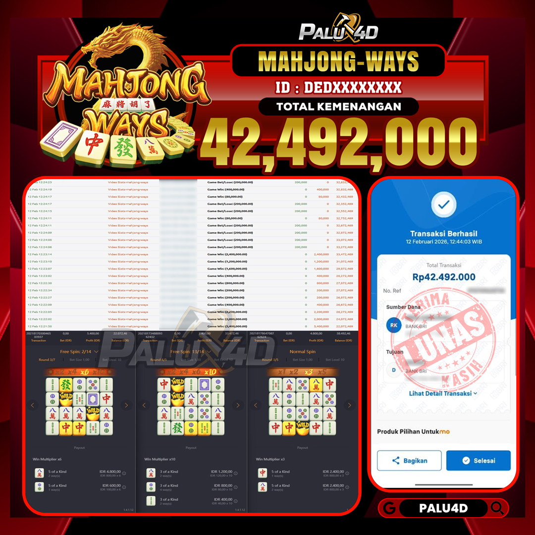 PALU4D – Menang Slot MAHJONG WAYS Rp.42.492.000.,- LUNAS PALU4D – Selamat bagi pemenang yang mendapatkan jackpot hari ini 12 FEBRUARI 2026 di game Slot […]