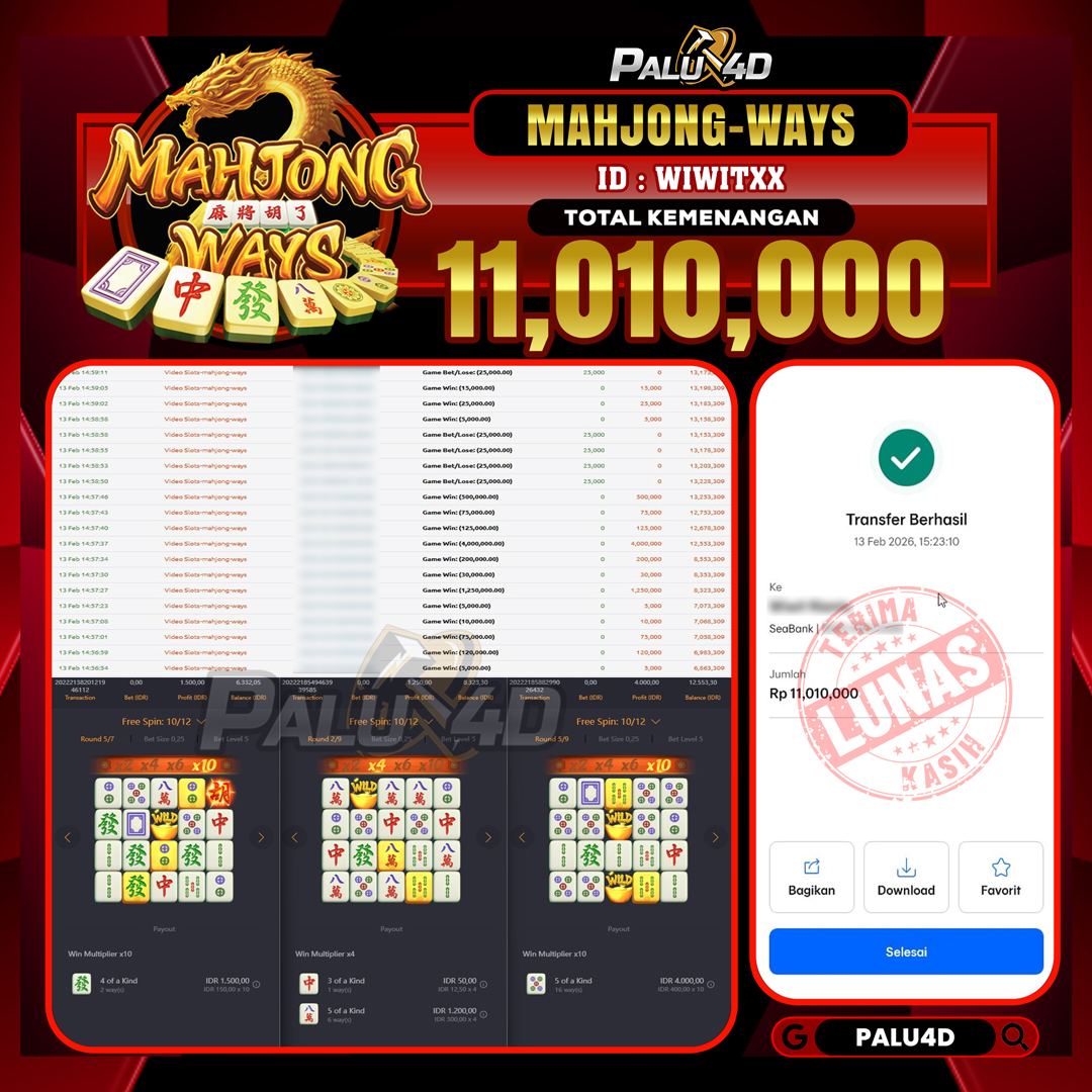 PALU4D – Menang Slot MAHJONG WAYS Rp.11.010.000.,- LUNAS PALU4D – Selamat bagi pemenang yang mendapatkan jackpot hari ini 13 FEBRUARI 2026 di game Slot […]