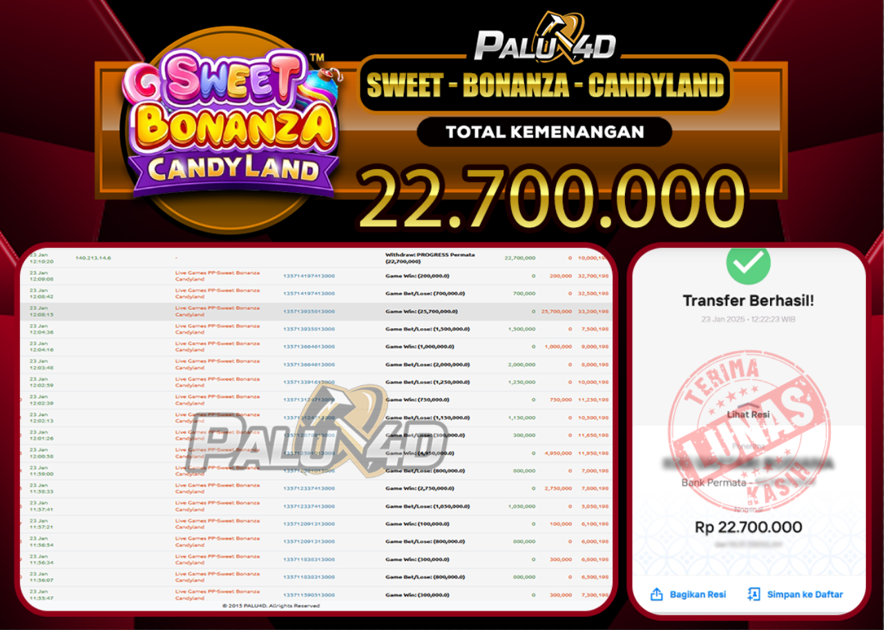 PALU4D – Menang LIVE CASINO SWEET BONANZA CANDYLAND Rp.30.000.000.,- LUNAS PALU4D – Selamat bagi pemenang yang mendapatkan jackpot hari ini 22 January […]