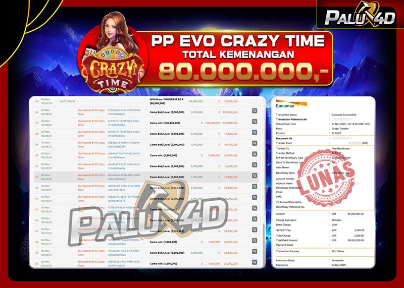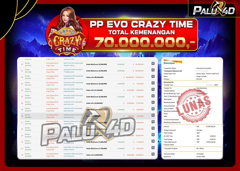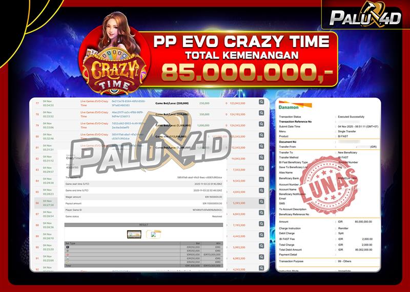 06/11/2025LIVE CASINO PALU4D – Menang Live Games EVO CRAZY TIME Rp 70.000.000.,- LUNAS PALU4D – Menang Live Games EVO CRAZY TIME Rp 70.000.000.,- LUNAS PALU4D – Selamat bagi pemenang yang mendapatkan jackpot hari ini 04 […]