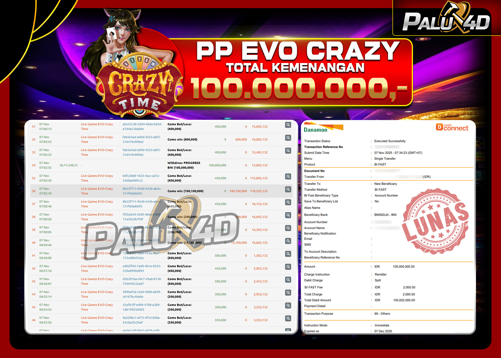10/11/2025LIVE CASINO PALU4D – Menang Live Games EVO CRAZY TIME Rp 100.000.000.,- LUNAS PALU4D – Menang Live Games EVO CRAZY TIME Rp 100.000.000.,- LUNAS PALU4D – Selamat bagi pemenang yang mendapatkan jackpot hari ini 07 […]