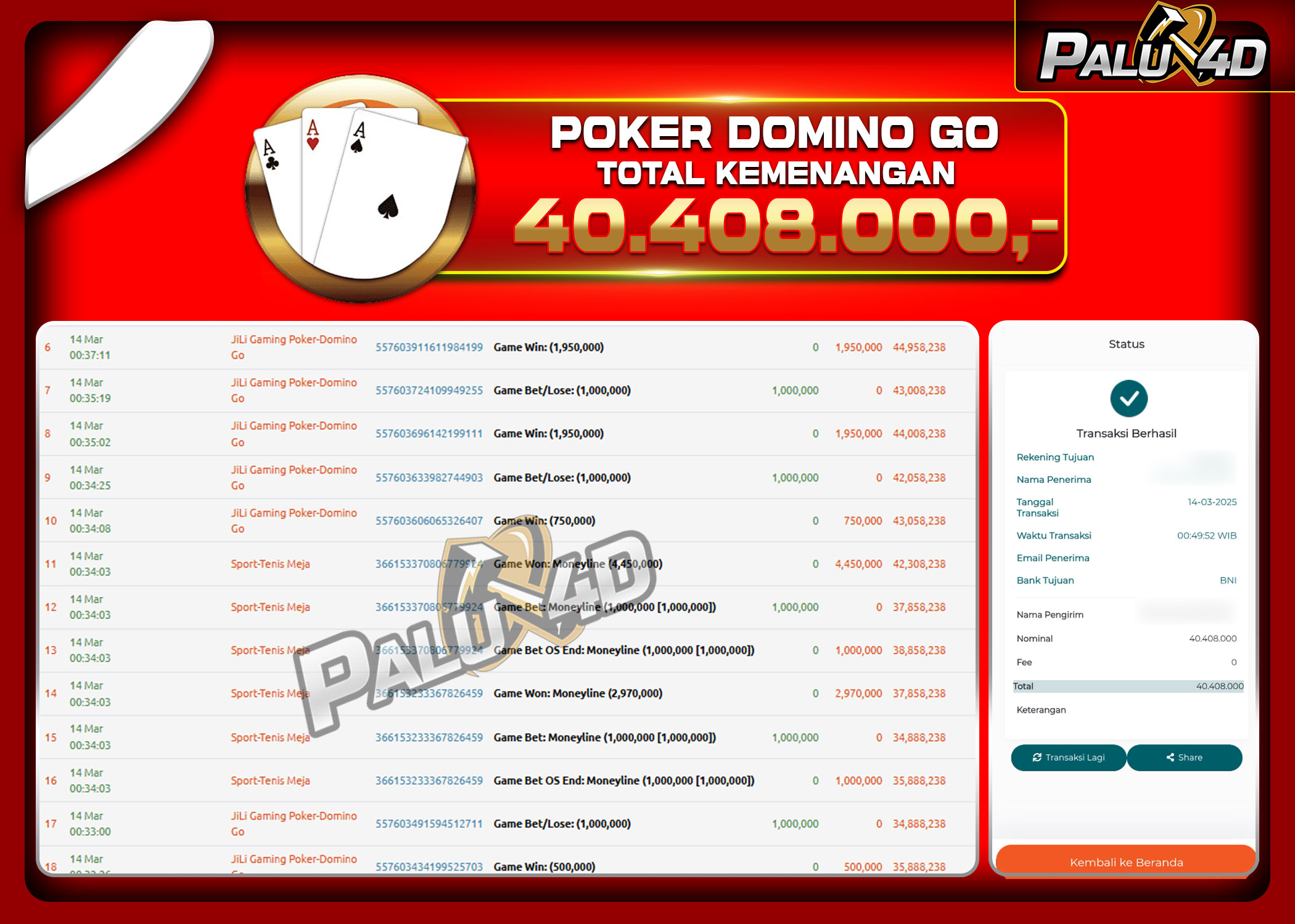 14/03/202514/03/2025LIVE CASINO PALU4D – Menang Live Games POKER DOMINO GO Rp 40.408.000.,- LUNAS PALU4D – Menang Live Games POKER DOMINO GO Rp 40.408.000.,- LUNAS PALU4D – Selamat bagi pemenang yang mendapatkan jackpot hari ini 13 […]
