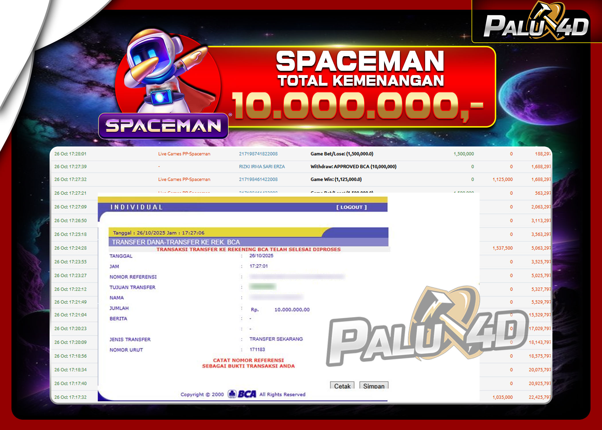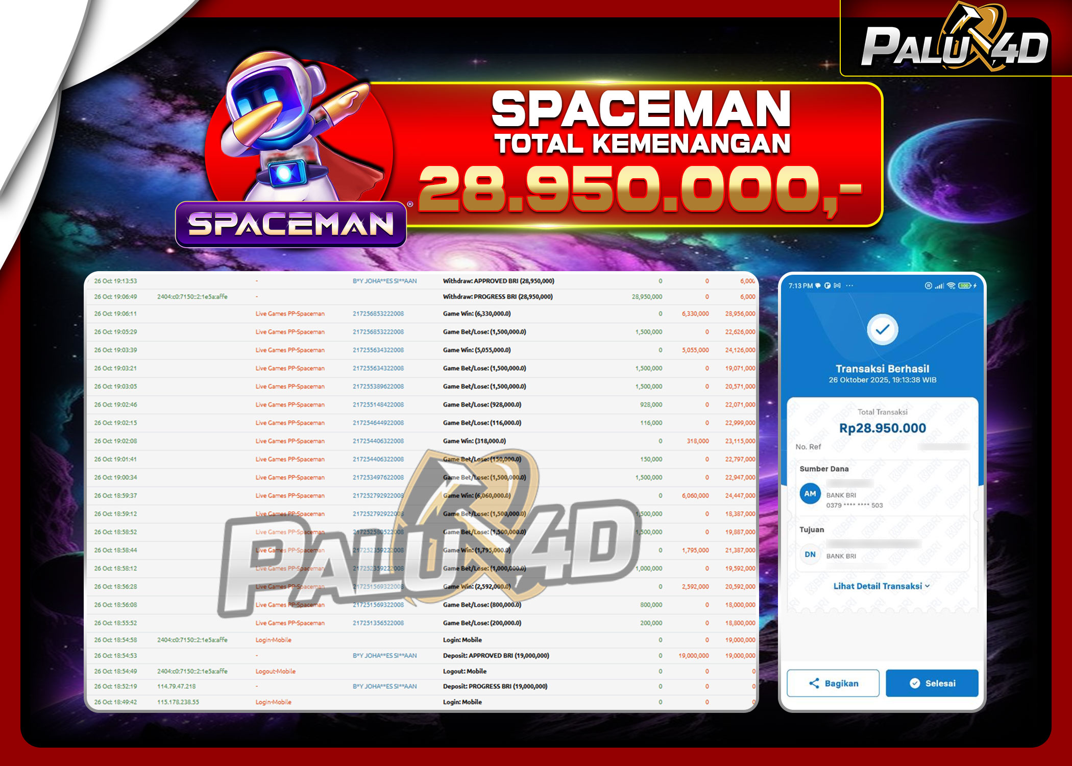 28/10/2025LIVE CASINO PALU4D – Menang Live Games SPACEMAN Rp 28.950.000.,- LUNAS PALU4D – Menang Live Games SPACEMAN Rp 28.950.000.,- LUNAS PALU4D – Selamat bagi pemenang yang mendapatkan jackpot hari ini 26 Oktober 2025 […]