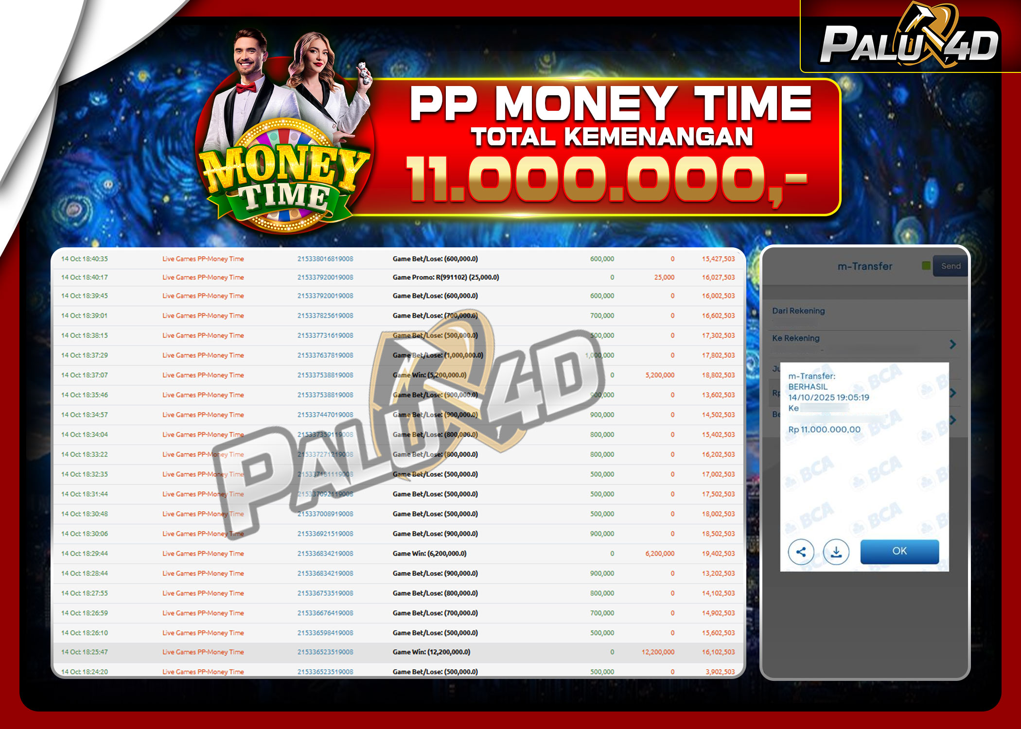 06/11/202506/11/2025LIVE CASINO PALU4D – Menang Live Games MONEY TIME Rp 10.000.000.,- LUNAS PALU4D – Menang Live Games MONEY TIME Rp 10.000.000.,- LUNAS PALU4D – Selamat bagi pemenang yang mendapatkan jackpot hari ini 05 NOVEMBER […]