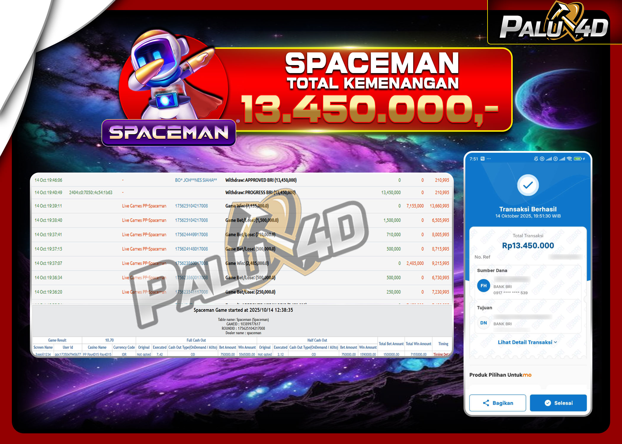 19/10/202519/10/2025LIVE CASINO PALU4D – Menang Live Games SPACEMAN Rp 13.450.000.,- LUNAS PALU4D – Menang Live Games SPACEMAN Rp 13.450.000.,- LUNAS PALU4D – Selamat bagi pemenang yang mendapatkan jackpot hari ini 24 Oktober 2025 […]