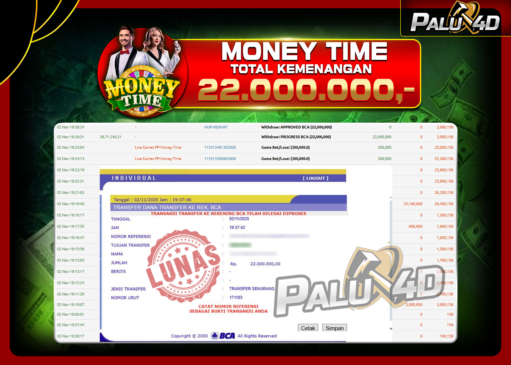 06/11/202506/11/2025LIVE CASINO PALU4D – Menang Live Games MONEY TIME Rp 20.000.000.,- LUNAS PALU4D – Menang Live Games MONEY TIME Rp 20.000.000.,- LUNAS PALU4D – Selamat bagi pemenang yang mendapatkan jackpot hari ini 03 NOVEMBER […]