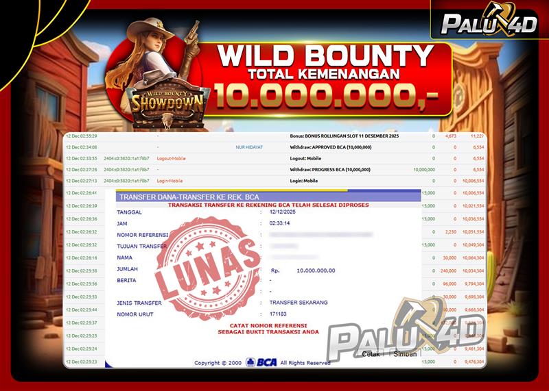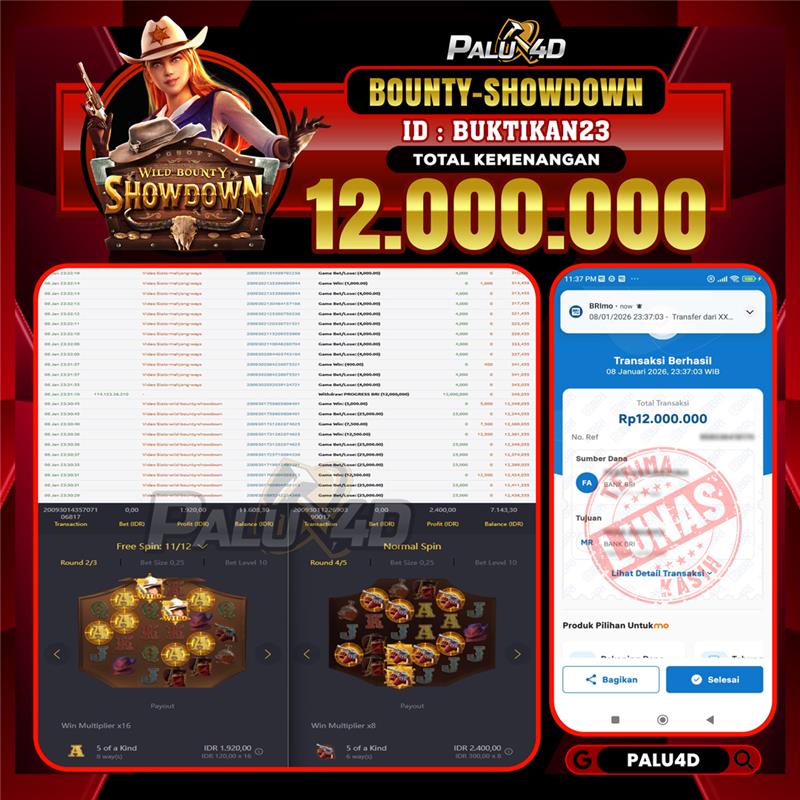 PALU4D – Menang Slot WILD BOUNTY SHOWDOWN Rp.12.000.000.,- LUNAS PALU4D – Selamat bagi pemenang yang mendapatkan jackpot hari ini 08 JANUARI 2026 di […]