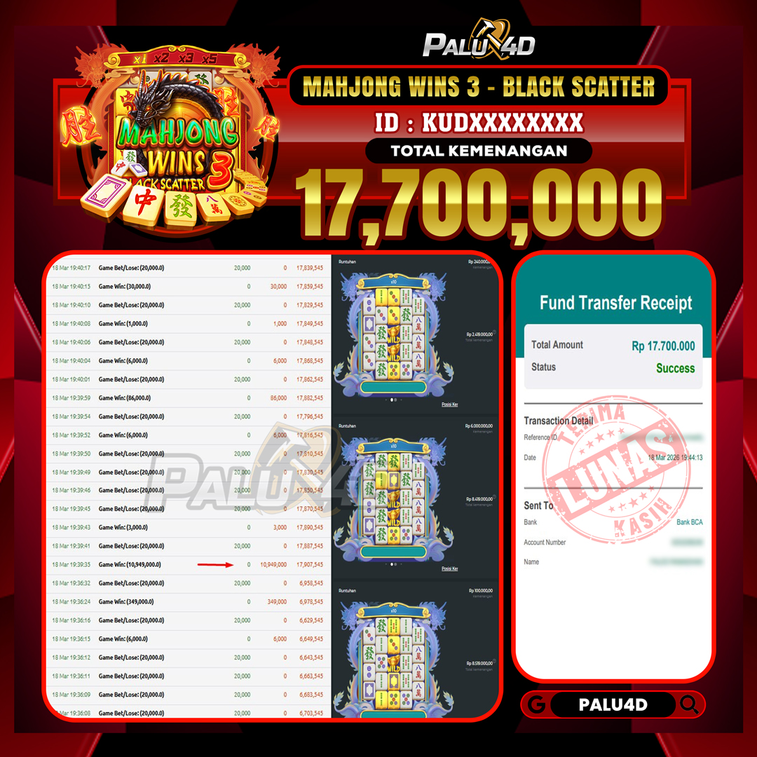 PALU4D – Menang Slot MAHJONG WINS 3 – BLACK SCATTER Rp.17.700.000.,- LUNAS