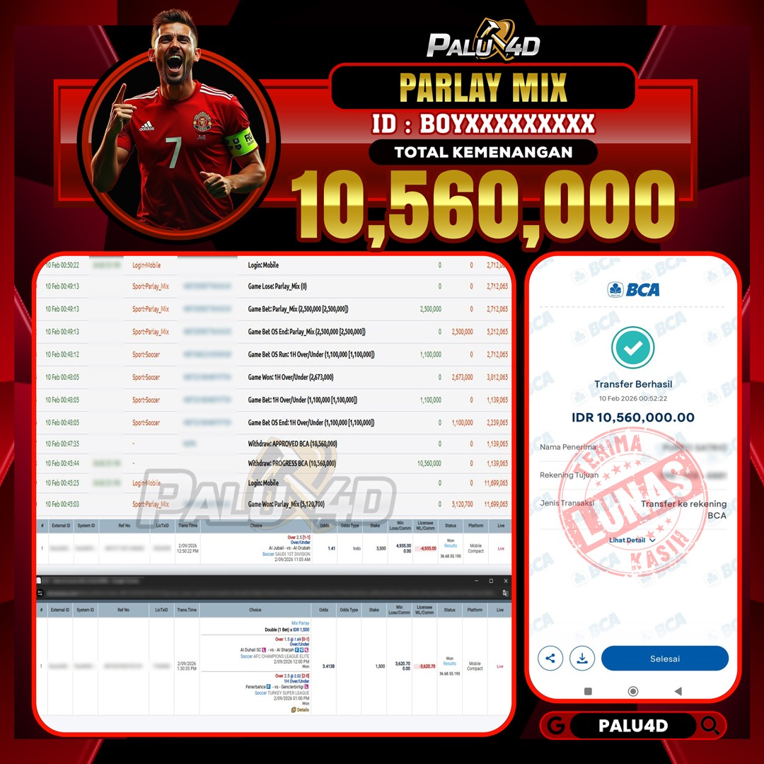 PALU4D – Menang SPORTBOOKS TARUHAN BOLA Rp.10.560.000.,- LUNAS PALU4D – Selamat bagi pemenang yang mendapatkan jackpot hari ini 10 FEBRUARI 2026 di game […]