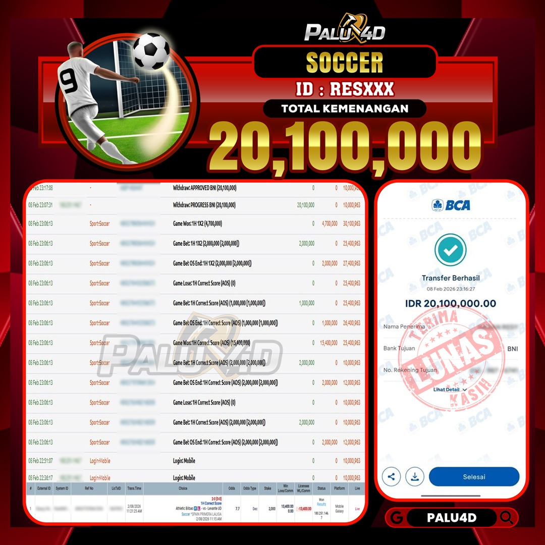 PALU4D – Menang SPORTBOOKS TARUHAN BOLA Rp.20.100.000.,- LUNAS PALU4D – Selamat bagi pemenang yang mendapatkan jackpot hari ini 08 FEBRUARI 2026 di game […]